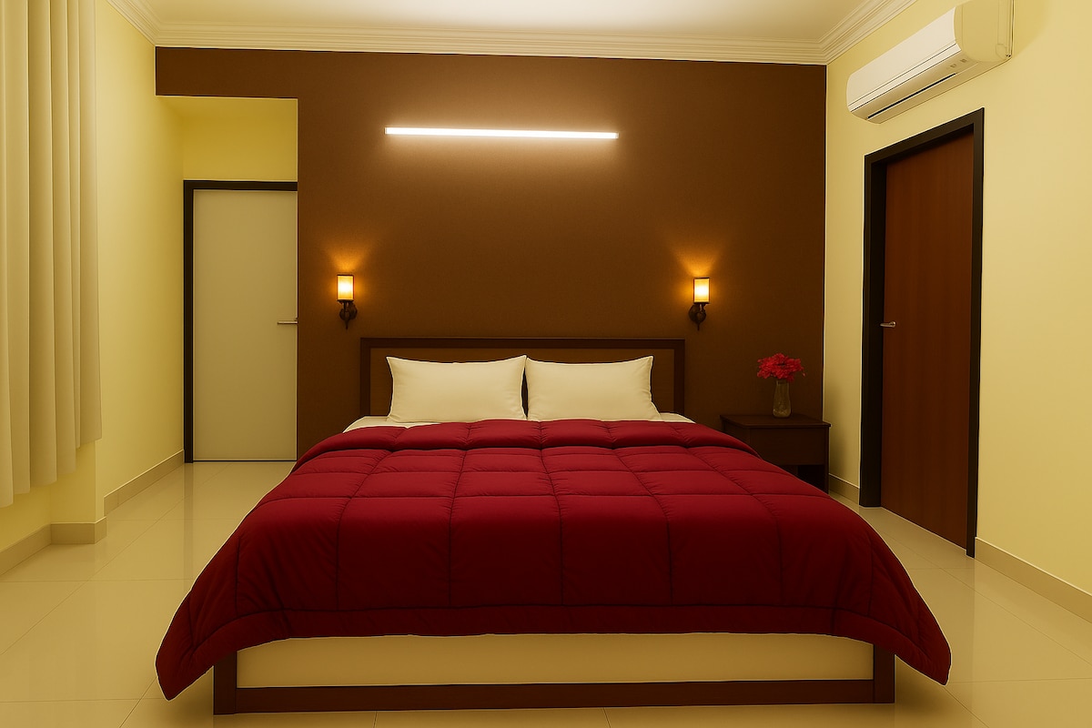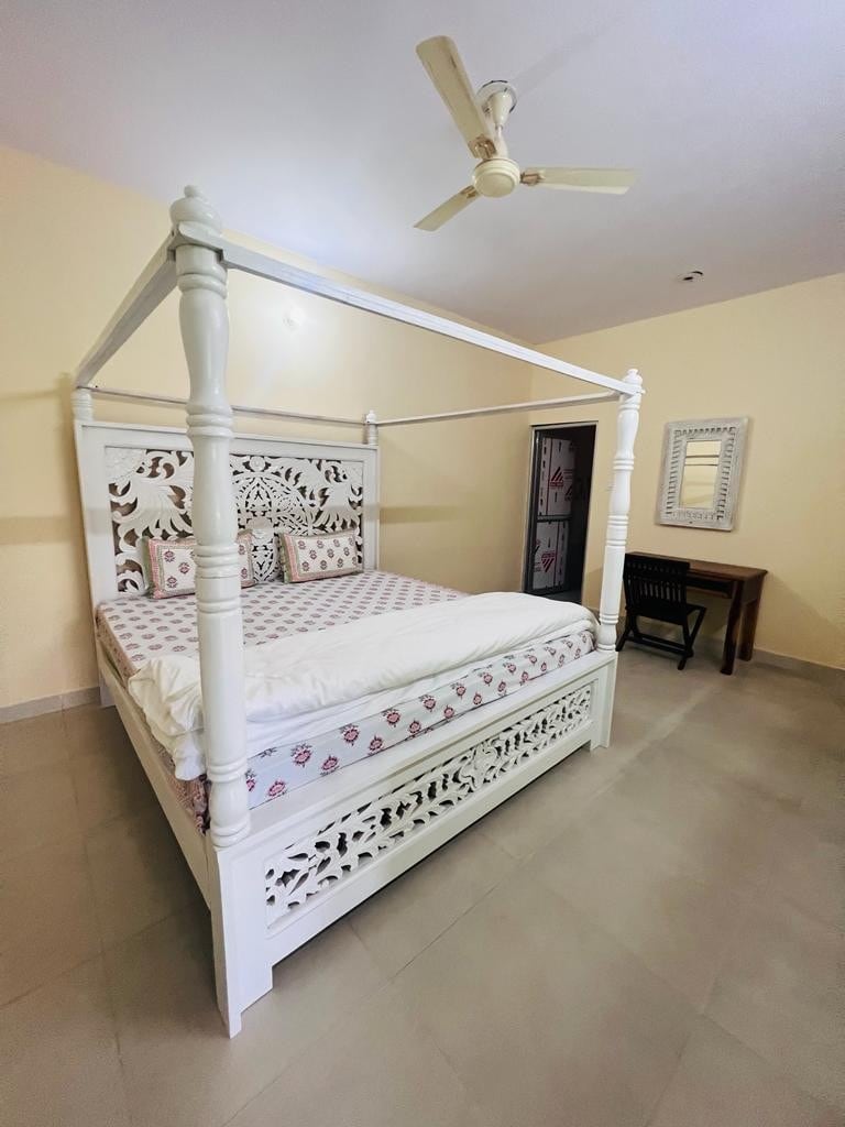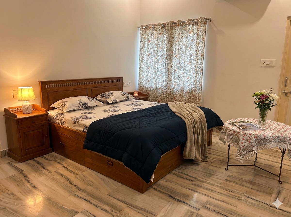 Nestled in Jodhpur, Krishna Villa is a serene escape blending modern aesthetics with cultural charm. Inspired by Krishna and Vrindavan, it features a lush terrace garden and a tranquil fountain, offering the perfect setting for family and friends to relax and reconnect. Pet-friendly & welcoming to furry companions, it promotes a harmonious, animal-friendly environment. In line with its spiritual ethos, Krishna Villa allows only vegetarian food, fostering a peaceful and compassionate atmosphere.