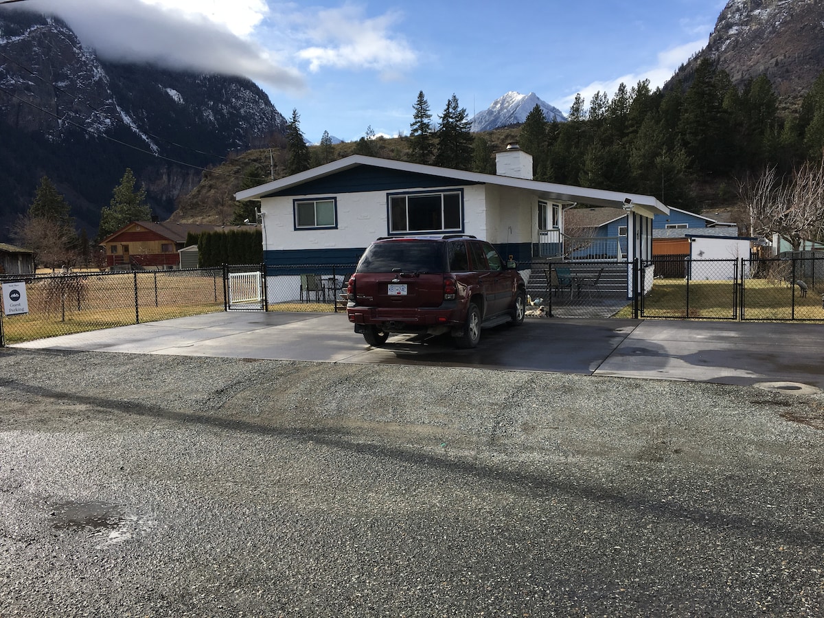 Our custom built post & beam cabin is located in rural Pemberton, offers privacy, beautiful views and close to town, (approx 1 km), shopping and restaurants. Our property backs onto the Lillooet River, the gateway to world class mountain biking and hiking trails. Our cabin is located approx 30 minutes from Whistler, the # 1 ski resort in North America. Joffre Lakes is less than 1/2 hour from our cabin. We are also minutes away from 2 golf courses, Sunstone Golf Club and Big Sky Golf.