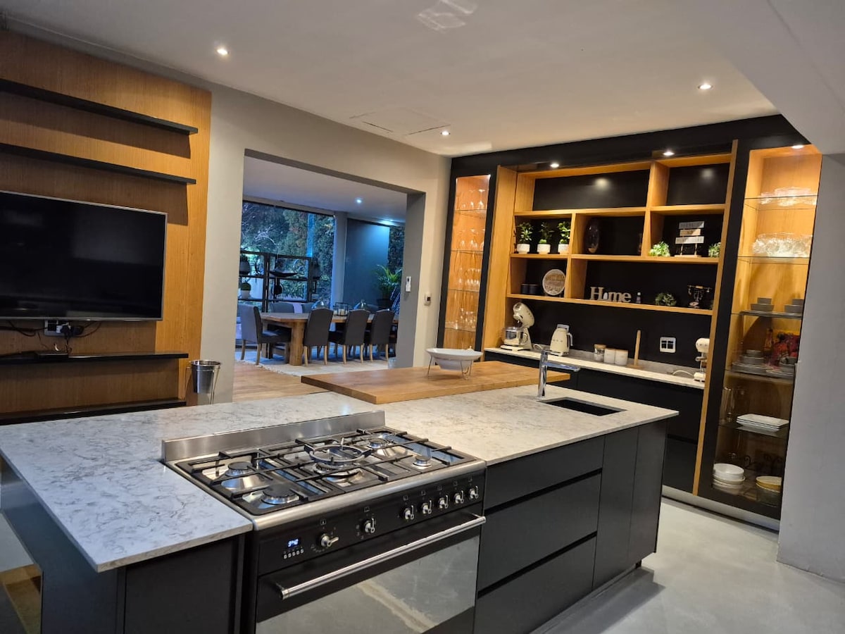 Our home is a canvas of tasteful decoration, adorned with unique furniture pieces that infuse the space with character and charm. The enchanting outdoor space is a haven for al fresco dining and relaxation by the sparkling pool. Only a 1-minute stroll away, you'll find yourself on the vibrant 4th Avenue – Parkhurst's beating heart. Indulge in the best fine dining and explore art galleries. Power supply is uninterrupted. Child-friendly, and with a dedicated workspace for business travelers.