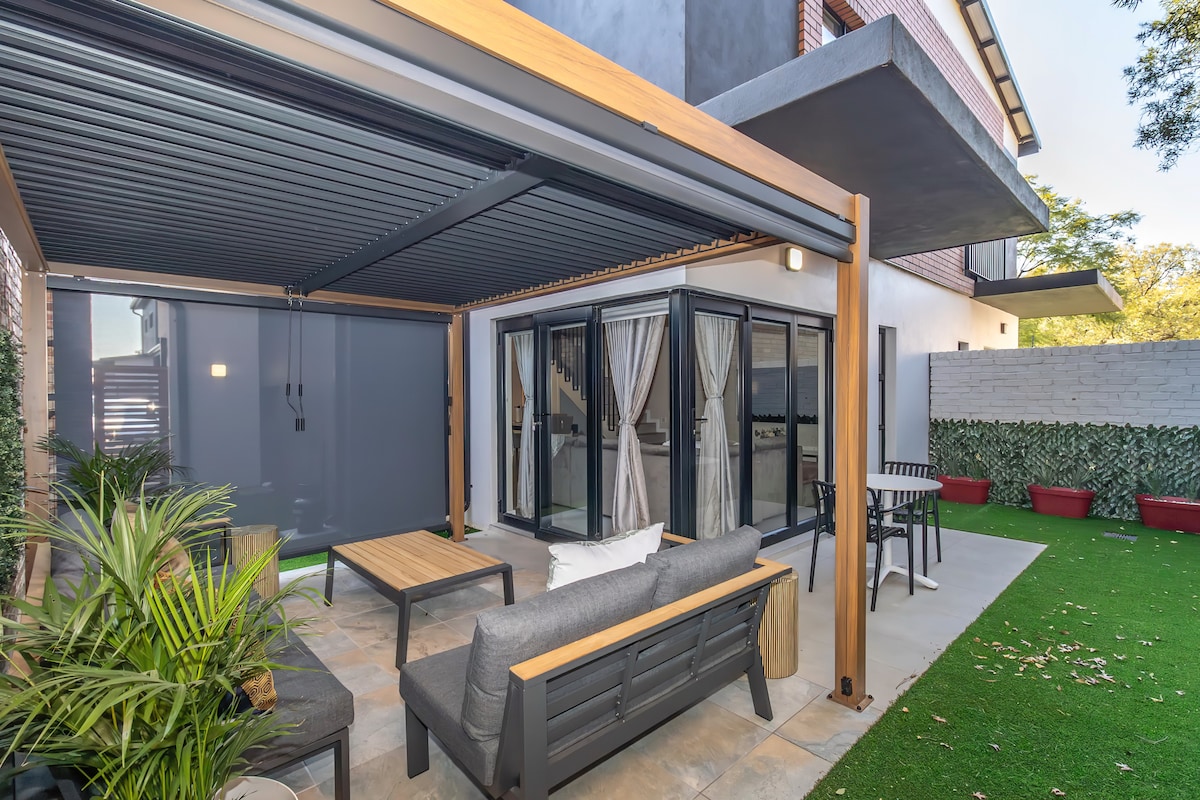 We welcome you to relax in our calm and luxurious space situated in a quiet section of Fourways. The apartment is uniquely and tastefully designed with amenities that radiate style and comfort. Treat yourself to this stunning apartment with a queen size bed, a fully equipped kitchen and a modern bathroom. Unwind on the patio or on the couch and enjoy a TV with Netflix and Youtube. The apartment has electricity backup that runs the TV and the Wi-Fi. Book your stay today and indulge in luxury.