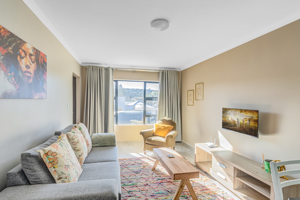 This beautiful luxuriously furnished and decorated apartment includes Fiber uncapped unthrottled Wifi, Full HD TV, media box with access to Netflix, YouTube, Google Play and other apps, dolce gusto coffee machine, dishwasher, steamer and Fan. Perfectly situated between Sandton (15 min) and OR Tambo (15 min). 5 min to Greenstone, Stoneridge and Flamingo Mall, Greenvalley Center and Modderfontein Nature and Golf Reserve. All amenities are supplied for the kitchen and bathroom