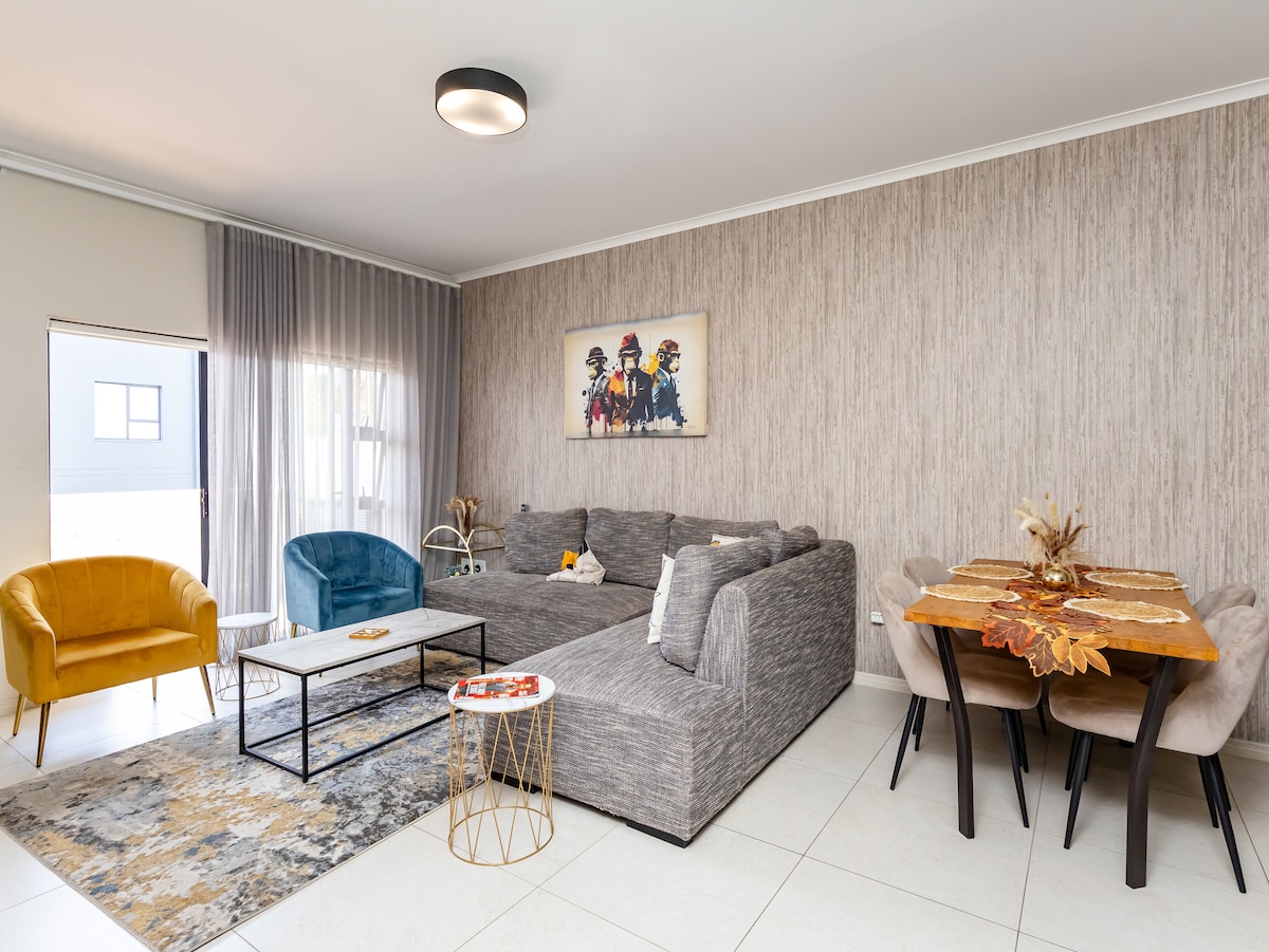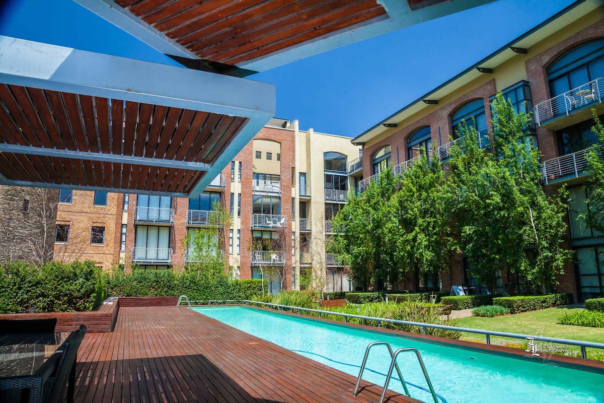 Modern, fully furnished, safe and quiet executive apartment in the heart of Melrose Arch. It's the perfect city getaway, and is suitable for both leisure and business travel. Uncapped Fibre Internet, safe and tranquil surroundings, a 65” TV (lounge) as well as a 40” TV (bedroom) both smart. Conveniently located within Melrose Arch shopping precinct with access to all stores and restaurants. Back up generator in the building, safe and secure private parking with 24 hour security 😊