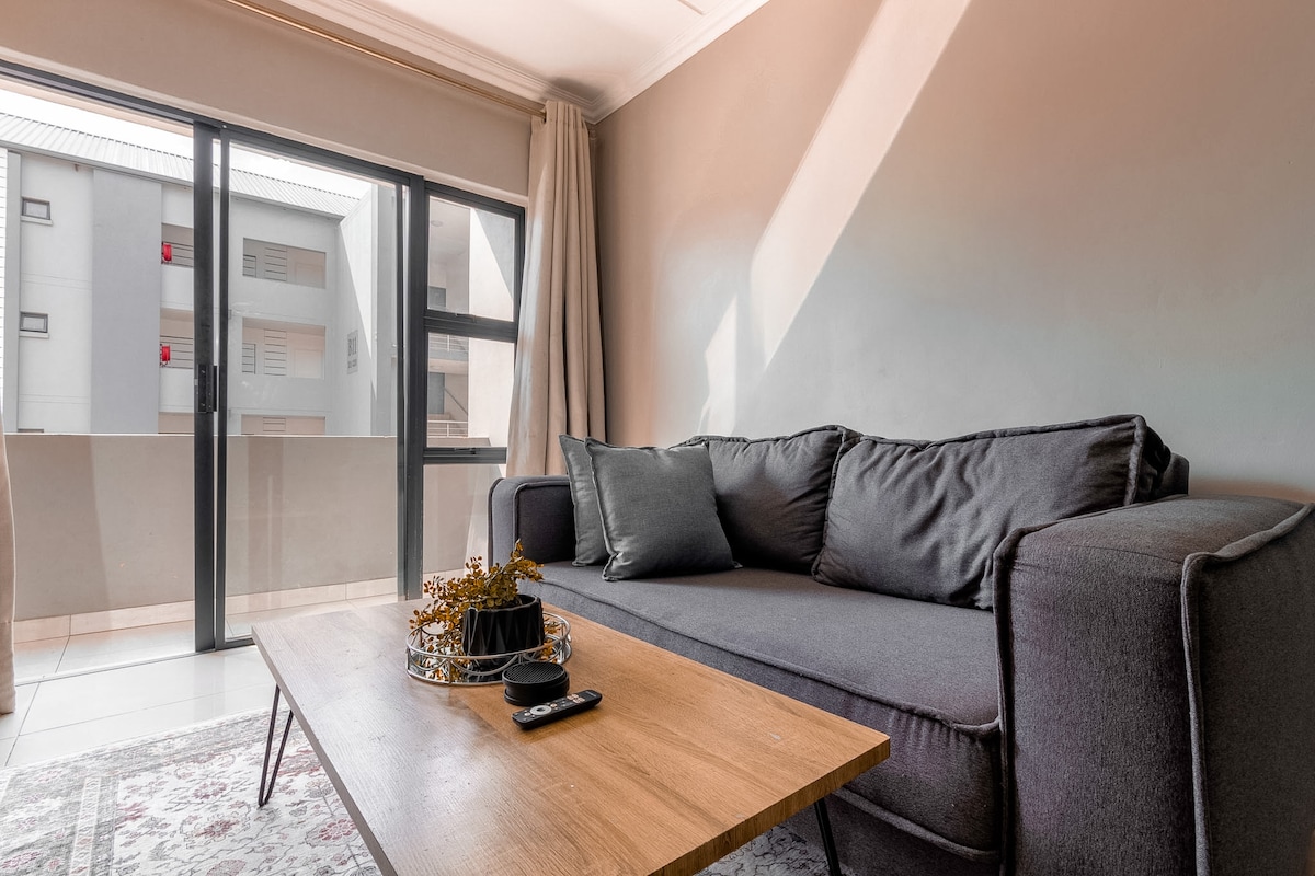 Keep it simple at this new stylish and peaceful bachelors in a centrally-located place, with a great view of Sandton, near Melrose Arch and Rosebank. Easy connection into M1 Free Highway drive to Pretoria. Ideal for a work or business traveller, local Jozi vibes, holiday or tourist exploring Johannesburg. Minimalistic unit designed just for you. With everything you need. Great internet speed WIFI connection.