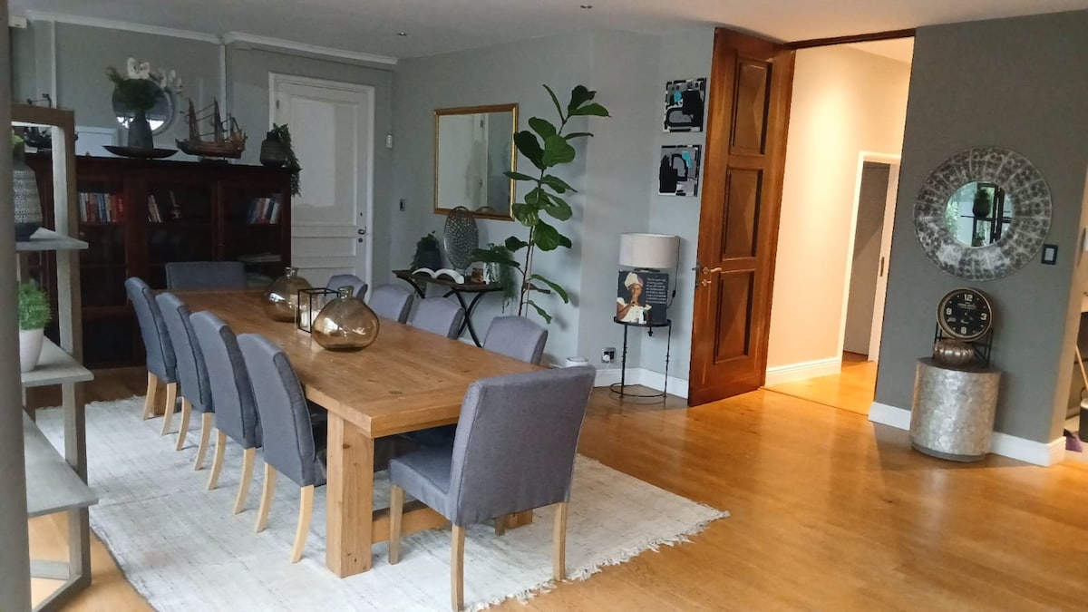 Now with full Solar backup. A beautiful home tucked away in the peaceful leafy avenues of Parkhurst, Johannesburg’s most sort after neighbourhood, within walking distance of the bustling bars and cafe’s of 4th Ave high street, and right next door to the beautiful Delta Park for with runners, cyclists, horse riders. Secure off street parking for 2 cars, this central location is just 5mins from Rosebank, 15mins from Sandton, and has everything you need in a stylish comfortable home.