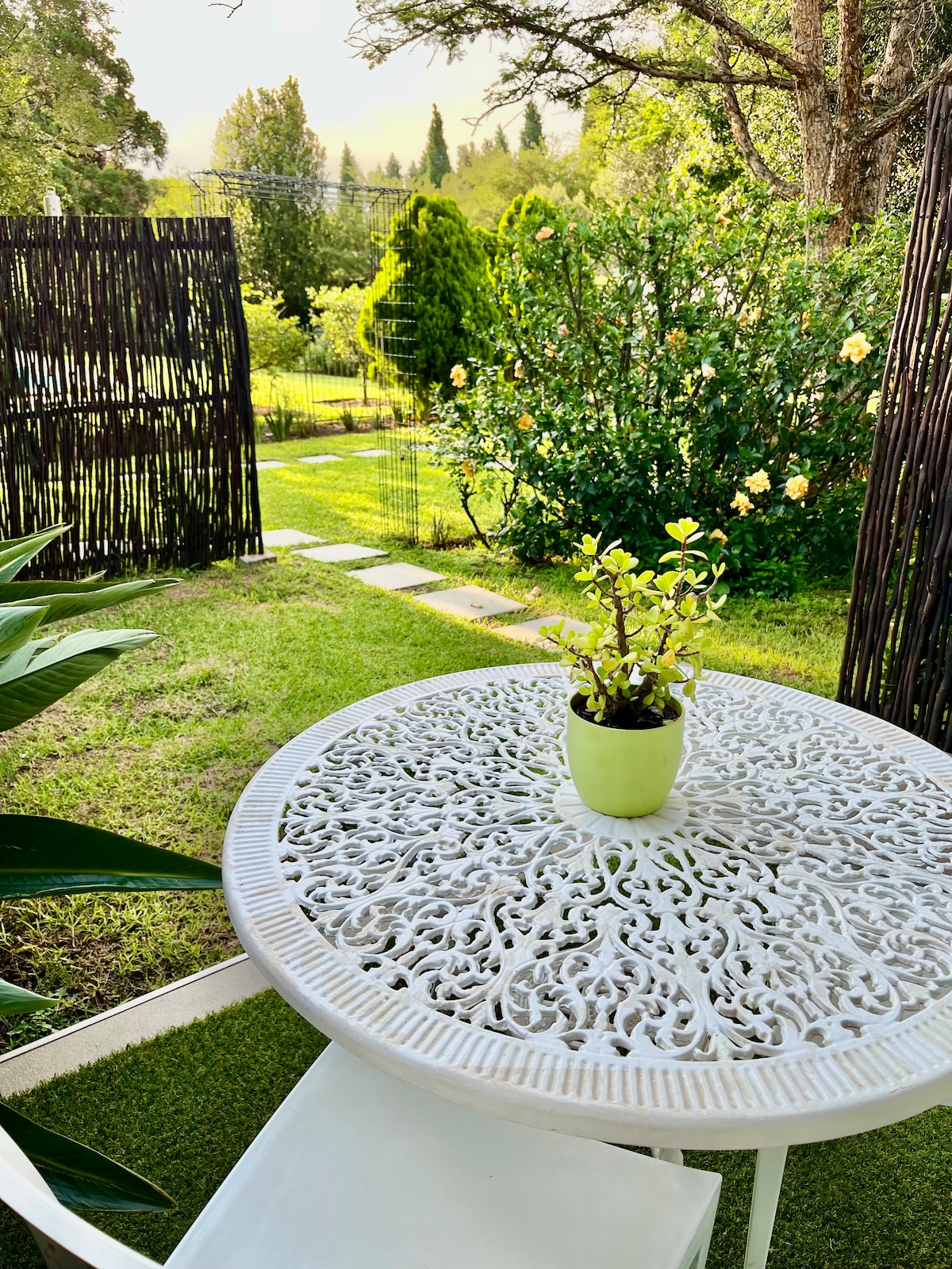 Solar panels allow TV, lights and WiFi to remain working during load shedding. And a gas stove completes the picture. What a bonus! Situated in the heart of Craighall Park the Teahouse offers a tranquil garden setting. It is close to Hyde Park, Sandton CBD and Gautrain.There are restaurants and shops in walking distance. Delta Park is in walking distance for birders and fitness enthusiasts. The Teahouse is suitable for both short and long term lets. The covered patio area is charming.