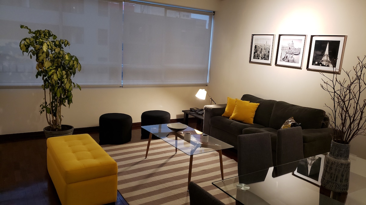 Modern and stylish apartment with 1 bedroom / 1 bathroom. Located in a very central, touristic area of Miraflores a few meters walking distance from the Kennedy Park and Boardwalk that is surrounded by excellent options of cafes, pubs and local restaurants. The apartment has a very cozy terrace, a fully equipped kitchen and living room with TV to enjoy in your visit to Lima. Very cozy and with everything you need to feel at home!