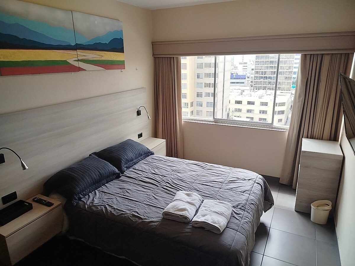 Apartment in Central Miraflores Room with queen bed, 50 inches Smart TV, private washing machine and Dryer , sofa bed, well-lit, in the heart of Miraflores, one block from Kennedy Park. Fourth floor in a residential area with excellent transport links, perfect for long stays, tourism, or business trips. Private bathroom Wi-Fi and Smart TV Kitchen equipped with dining table for 4 people Guest assistance and guidance.