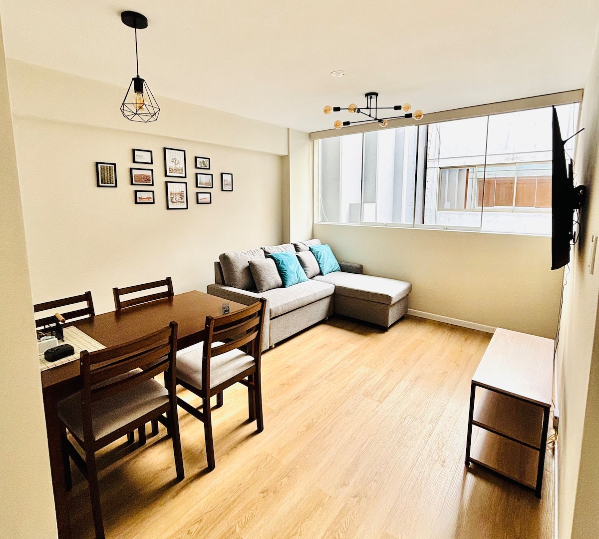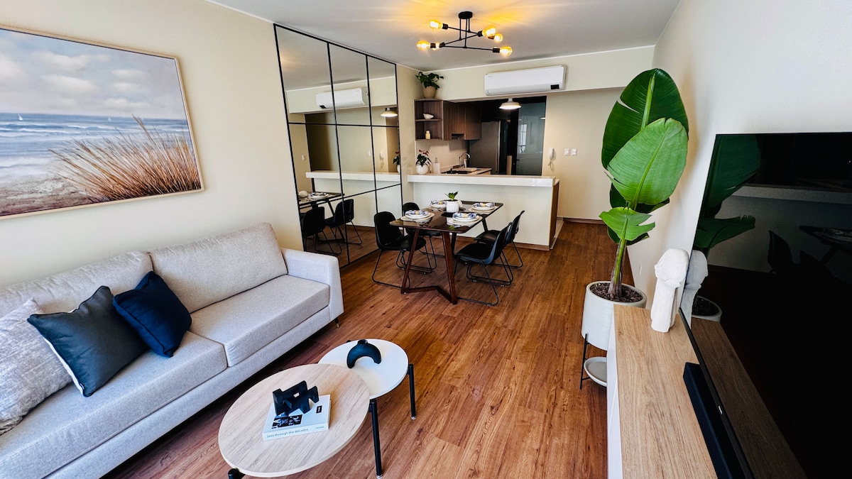¡Bienvenido a tu hogar en Miraflores! Disfruta de un departamento moderno, cómodo y lleno de detalles pensados para ti. Relájate en nuestras instalaciones, trabaja con wifi de 500 Mbps o sal a explorar: estarás a pasos de Larcomar, el malecón y el Parque Kennedy. Incluye cocina equipada, estacionamiento, piscina, coworking, sala bar y gym. TV 65" con cuentas de Netflix y Prime. Perfecto para viajeros que buscan estilo, ubicación y comodidad. ¡Te esperamos para brindarte la mejor experiencia!