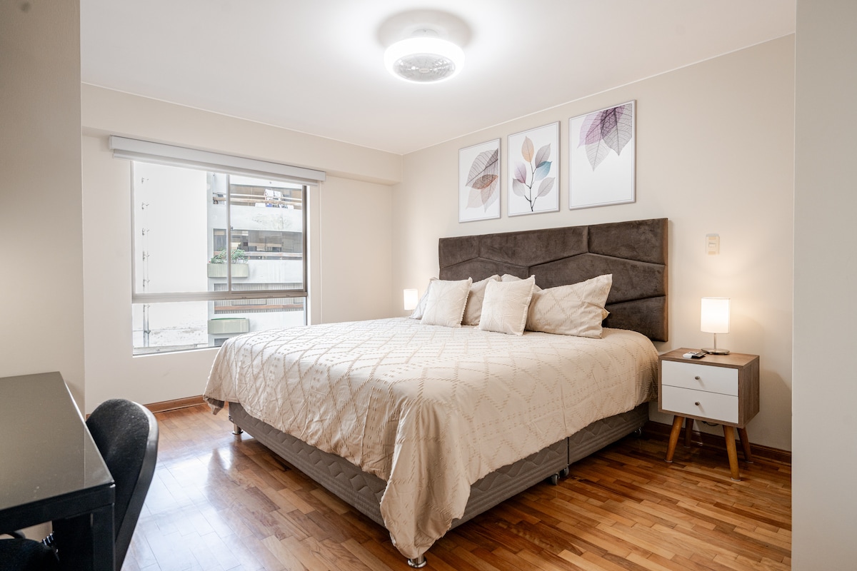 ✨ Luxury apartment for a perfect stay Exclusive to Airbnb, with HIGH-SPEED WIFI, FREE PARKING, and 24/7 SERVICE for your peace of mind. 📍 Unbeatable location In the heart of Miraflores: just 2 blocks from Kennedy Park and a short walk from cafes, restaurants, shops, and main attractions. 🏡 Your ideal space Fully equipped apartment with top-of-the-line amenities and an open design that combines style and functionality.