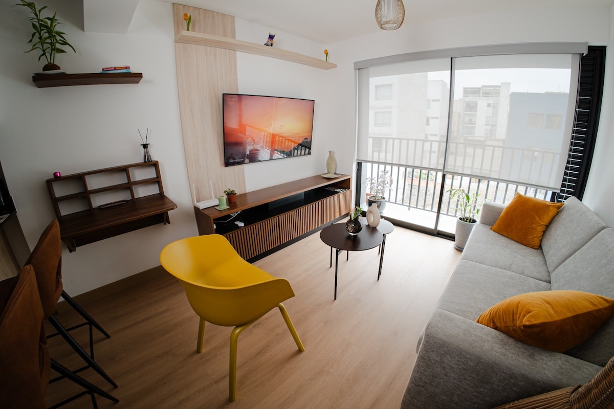 Ideal for long stays. The best stay for executives or couples. Located in the best business area of Lima, with everything at your grasp!. Within walking distance of banks, restaurants, cafes, shopping, entertainment centers, bus stops and more. Early check-in subject to availability. Enjoy a cozy, very illuminated apartment, with all the comforts to remote work and rest. In a modern building with 24-hour reception, gym, swimming pool in one of the most beautiful and safest areas of Lima.