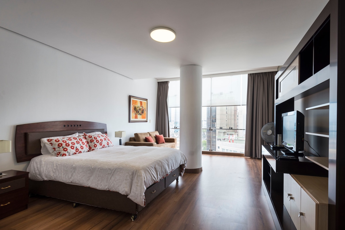 米拉弗洛雷斯Larcomar AC WIFI车库单间公寓,配有加大双人床