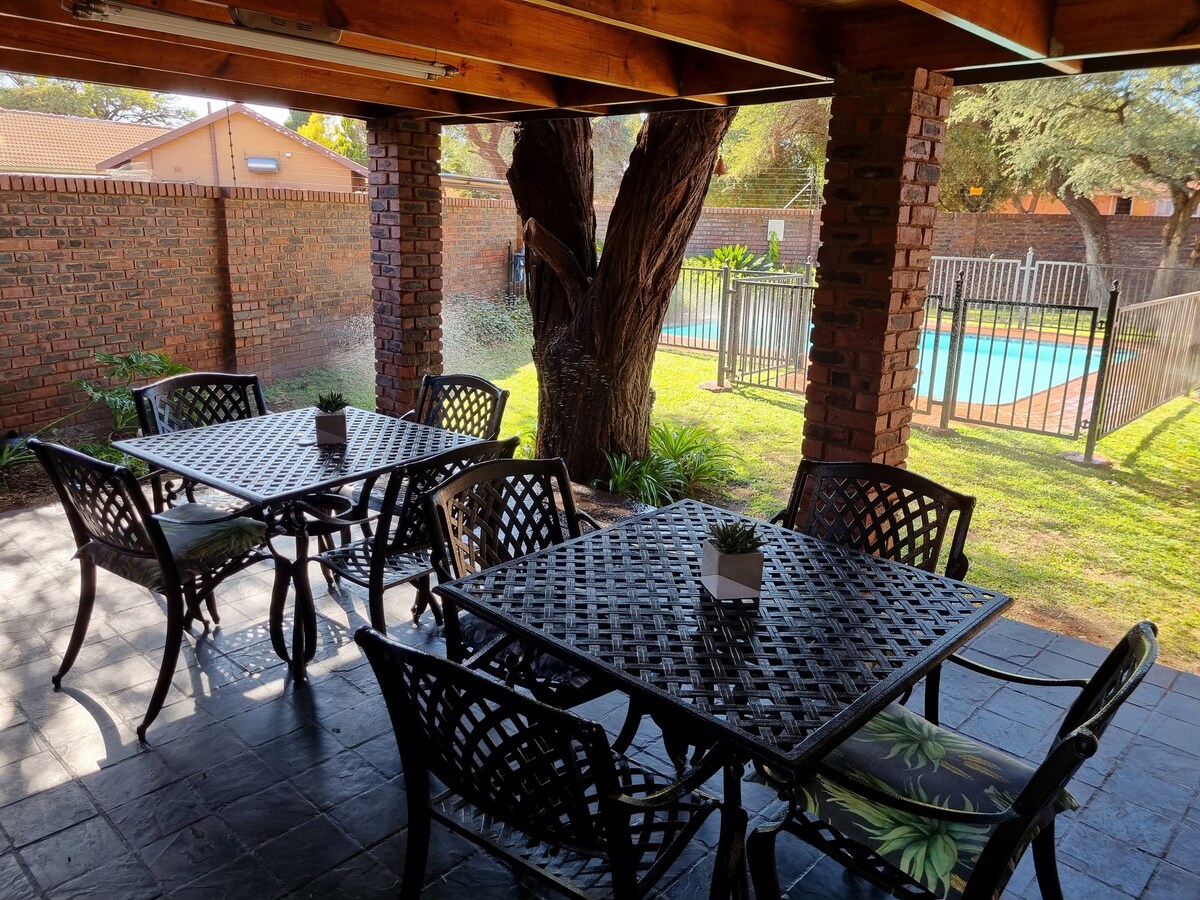 Private luxurious flatlet attached to our home. It is equipped with a queen bed, kitchenette, and air conditioning. The kitchenette has full sets of crockery, cutlery, kettle, toaster, induction cooker, microwave, air fryer and a concealed bar fridge. The bathroom has a huge spa-like shower and a soft close toilet suite. Free wifi and free access to Netflix, Prime Video and Showmax. Guests can login to their own DSTV account.