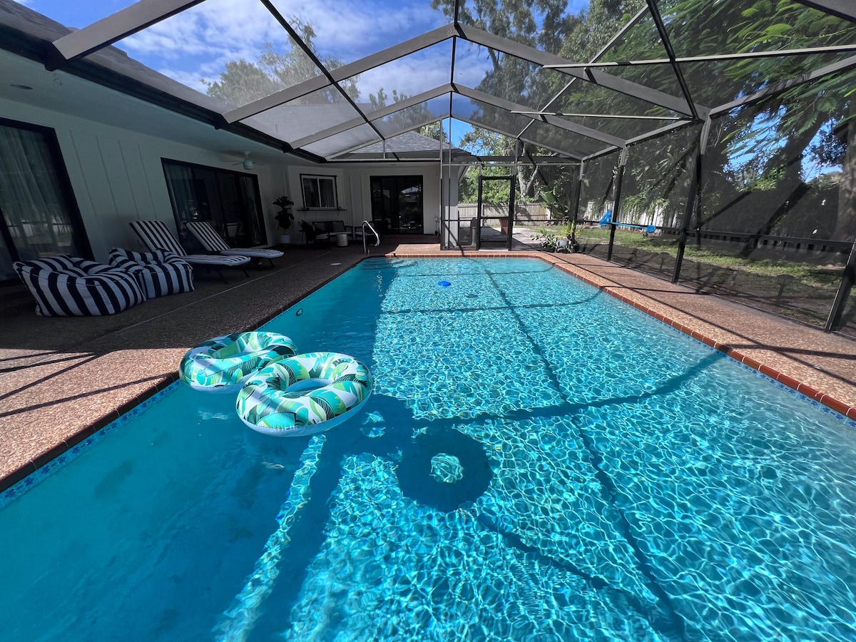 豪华3卧室/3卫生间,带加热泳池,步行可至海滩!