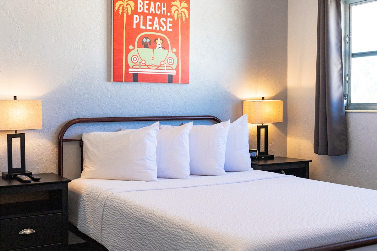 King Suite at Las Olas – Modern Comfort Steps from the Sand Soak up the sun and unwind at Las Olas of Treasure Island, a boutique coastal escape just across the street from the sparkling water of Treasure Island Beach. A gem of 12 clean & comfortable guest rooms designed for beach lovers. This King Suite sleeps 4 with a Queen sofabed, kitchenette and all the essentials to make you feel at home. Modern amenities with beachside charm Las Olas ~ let the waves guide you!