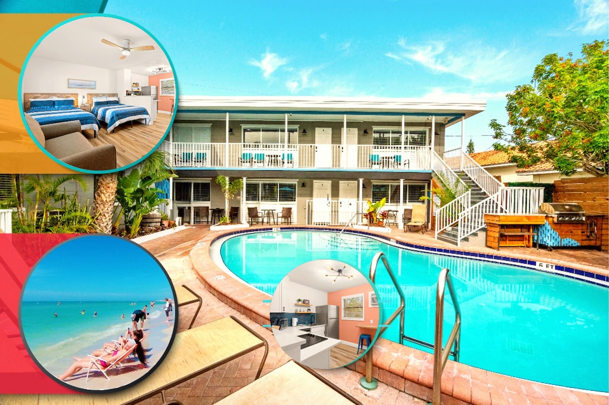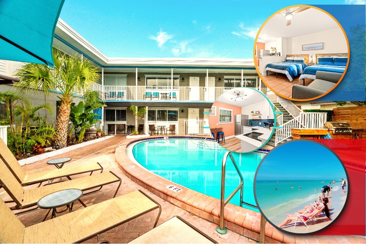 How far is the beach? Just steps away! Open the door to your perfect getaway at Boutique Beach Retreat. We are located across the street from the beautiful Treasure Island Beach and a short distance from John's Pass, where you can enjoy the pristine white sand, ocean breezes and all the adventures and activities you desire. Our guests love the warm, inviting classic Florida charm of our Boutique-Style Hotel. Come stay with us at Boutique Beach Retreat for your unforgettable beach vacation!