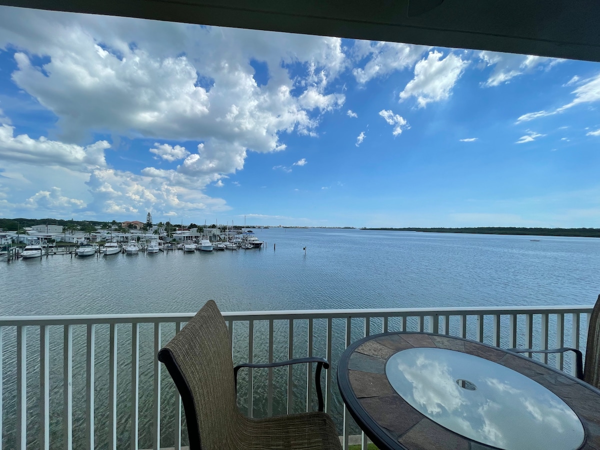 Penthouse corner unit with stunning water view from the living room, bedrooms and balcony! This waterfront condo is in prime location. A block away from Johns Pass Boardwalk (#1 tourist destination in the county) and RIGHT across from the pristine white sands & sunsets of the Gulf of Mexico. The property offers a heated pool, hot tub, fitness room & event center. Our condo has everything you need including fully stocked kitchen, laundry in unit, high speed wifi & beach equipment.