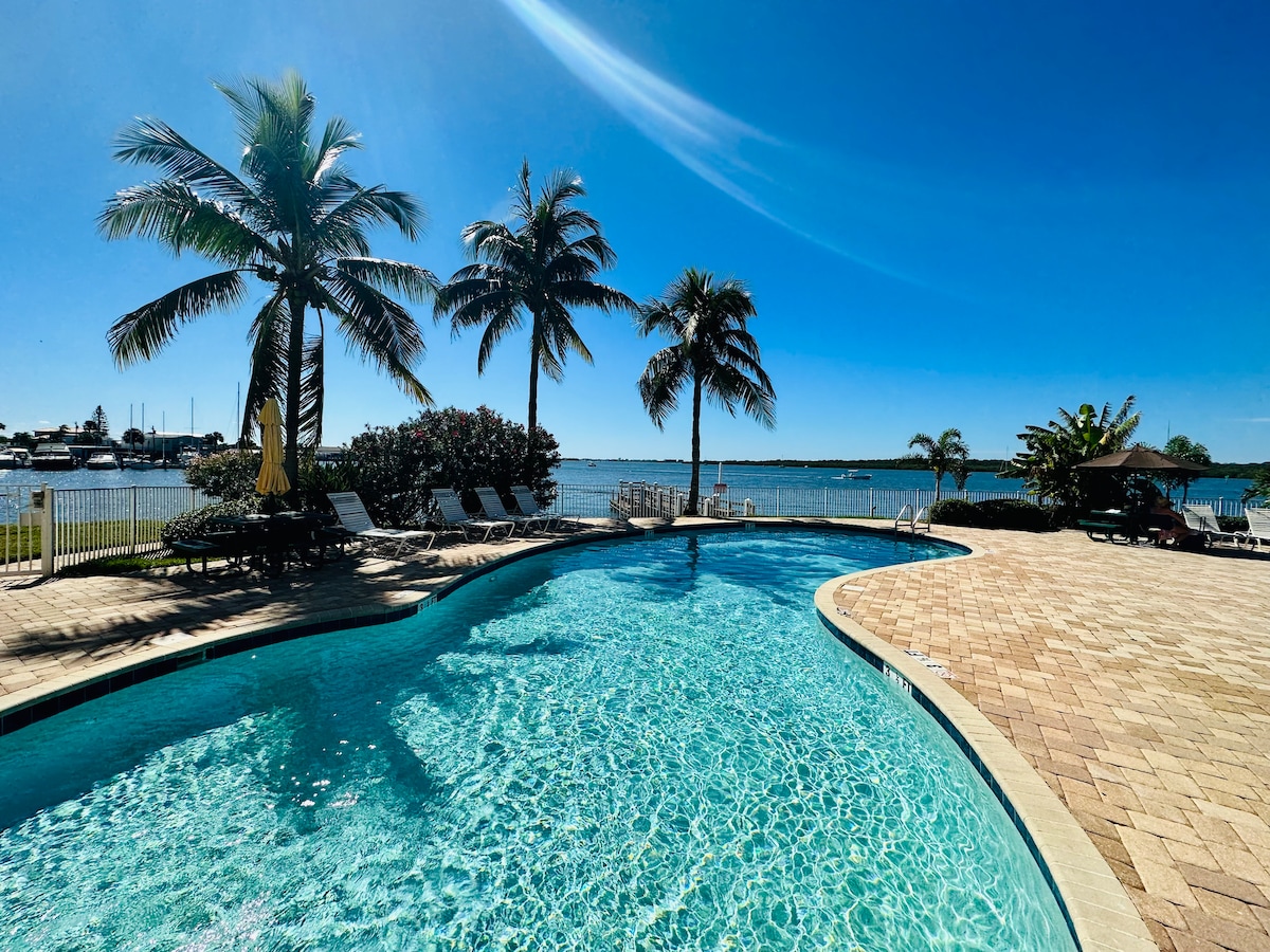 This unit is completely updated and modern! Enjoy a GORGEOUS view from the 20' private balcony overlooking the Bay, pool and hot tub! Watch dolphins every morning while sipping your coffee, or while enjoying a glass of wine in the evening! A 6-minute drive to Madeira Beach, and close to all amenities with many restaurants nearby, including Doc Ford's next door, and shopping within 7 minutes. Lots to do; close to fishing including deep sea, and jet skiing. 1 bedroom, sleeps 4; comfy pull-out.
