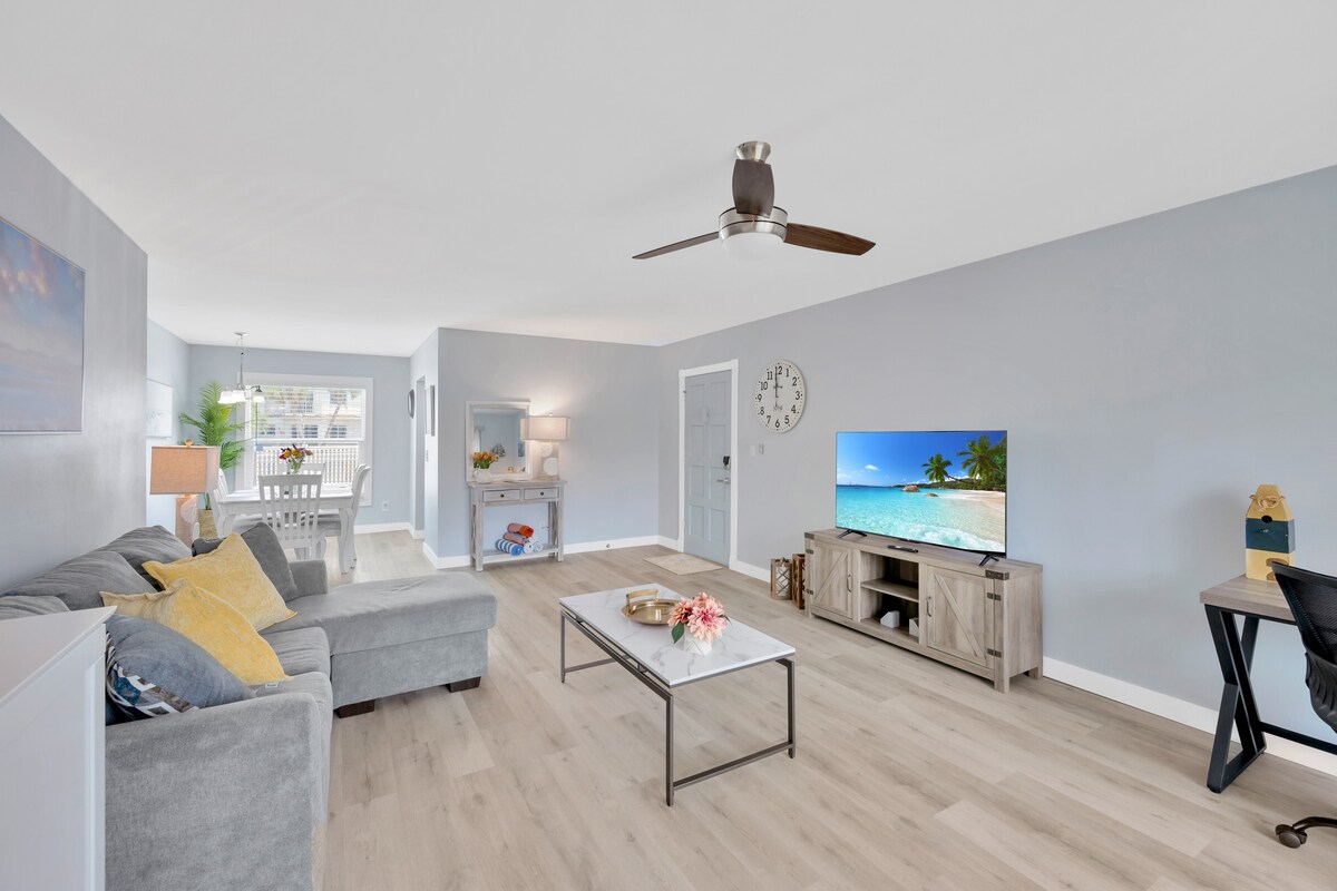 Pools are open and wifi works great! Completely Renovated and Beautiful!2 Bedroom 1 Bathroom Upstairs unit w/t Full Kitchen. This unit sleeps 6 people. Sorry No Pets Allowed. Each bedroom has a queen size bed and the sofa turns into a queen bed as well. Watch a Movie on the 70" TV in the Living Room or Play a Game on the PlayStation 4! Or Retreat to one of the 2 bedrooms each with a 55" TV. Full Kitchen includes Stove