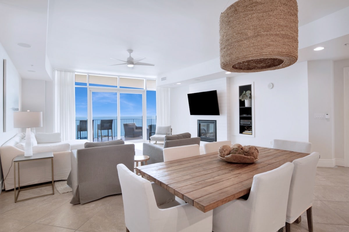 Amazing views! Beach front "Peace in Perdido Key” is a modern, minimalist getaway designed to put you at ease. 2 bd/2.5 ba unit just steps to the white sand & waves. It’s in a private 6-unit building, next to a 2 mile natural state park full of sand dunes, sea oats & wildlife- beach stroll heaven! Soak up the expansive ocean views & sunsets from our top unit’s 2 balconies or from the open floorplan’s many windows bathing you in natural light. Family friendly getaway w/best beach front experience