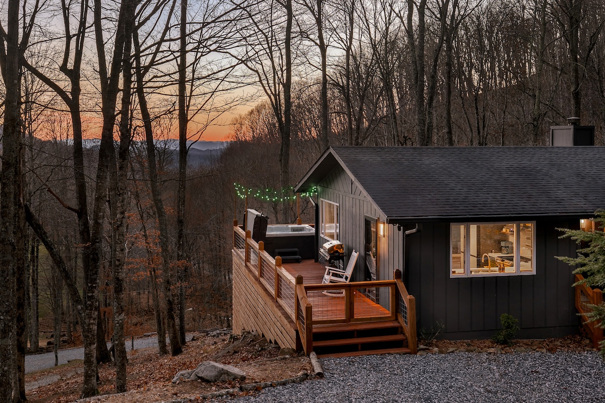 山间度假屋,带热水浴缸 + 火炉,靠近阿什维尔