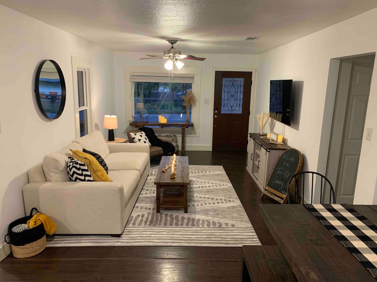 Experience 5-star luxury in our remodeled 3 bedroom home in the heart of the Texas Hill Country. Perfect for up to 6 guests, this private retreat features a fabulous backyard with a firepit and gazebo. Located just 1 block from the 290 Wine Trail and a short walk to downtown Johnson City, it's the ideal base for exploring wineries, breweries, and state parks. Enjoy modern design, chic comfort, and total privacy in this spotless, stylish home with comfortable beds.
