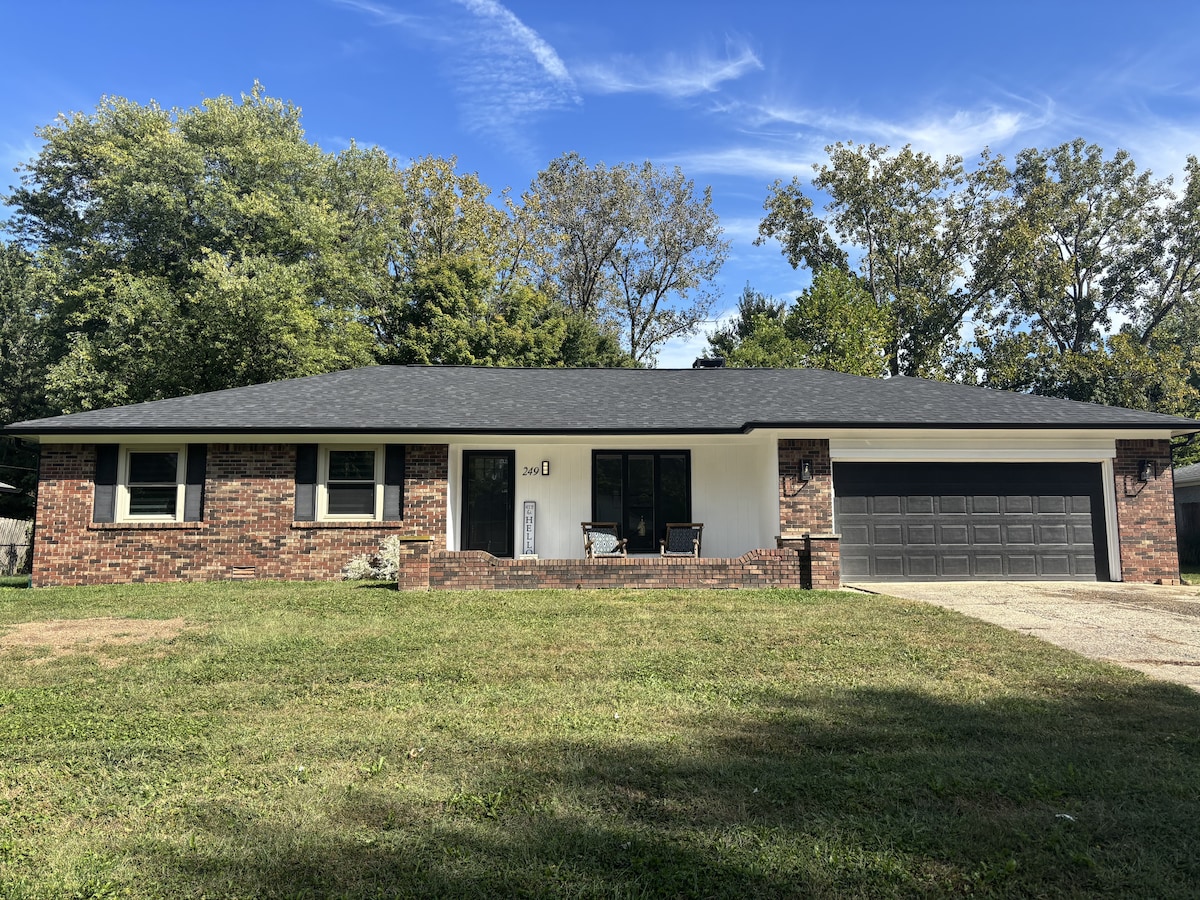 Experience the charm of downtown Franklin in our delightful Airbnb. Our home features three bedrooms with 1 king bed (1 on the main floor & 2 upstairs), and 2 bathrooms. Enjoy a full coffee and tea bar and a delightful wrap-around front porch with a beautiful view of Main Street, perfect for relaxing with a cup of coffee/tea and connecting with friends and family. Just a 10-minute or less walk to restaurants, shops, and the amphitheater. Only 7 minutes from I-65 and 30 minutes to downtown Indy.