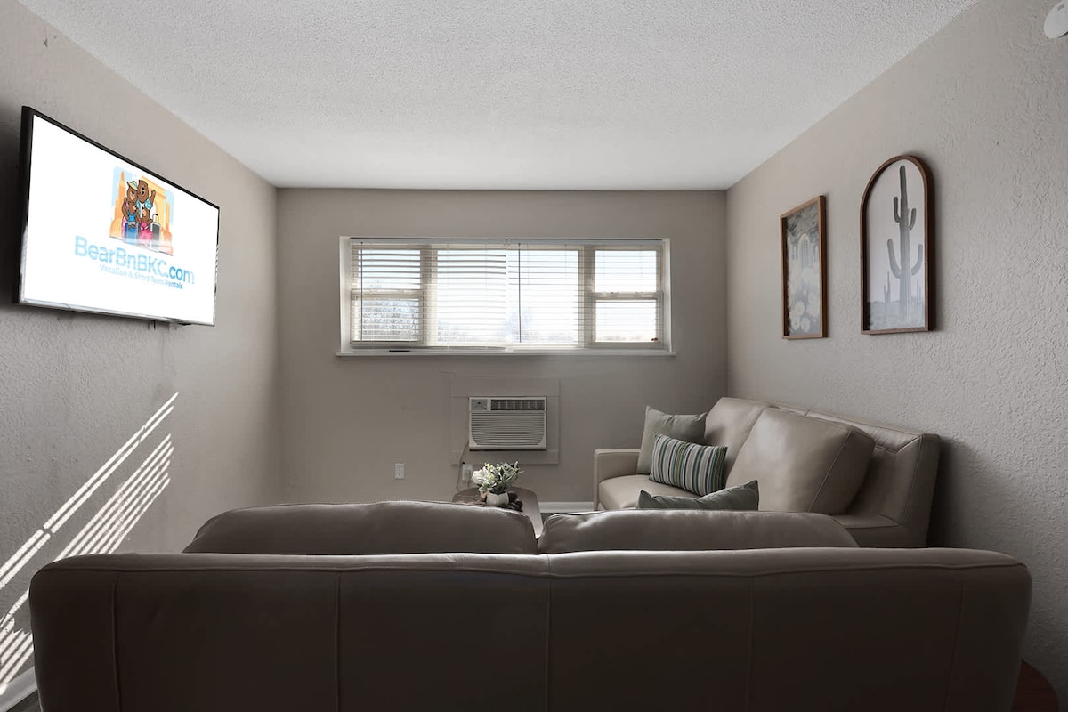 Welcome to this bright, newly updated Kansas City apartment—Just 12 minutes from Arrowhead Stadium, perfect for FIFA World Cup 2026! Our inviting space designed for comfort, convenience, and a touch of fun. With all-new furnishings, modern finishes, and a built-in arcade for game nights, this home offers a relaxed and enjoyable stay just minutes from the city’s top attractions, dining, and nightlife.