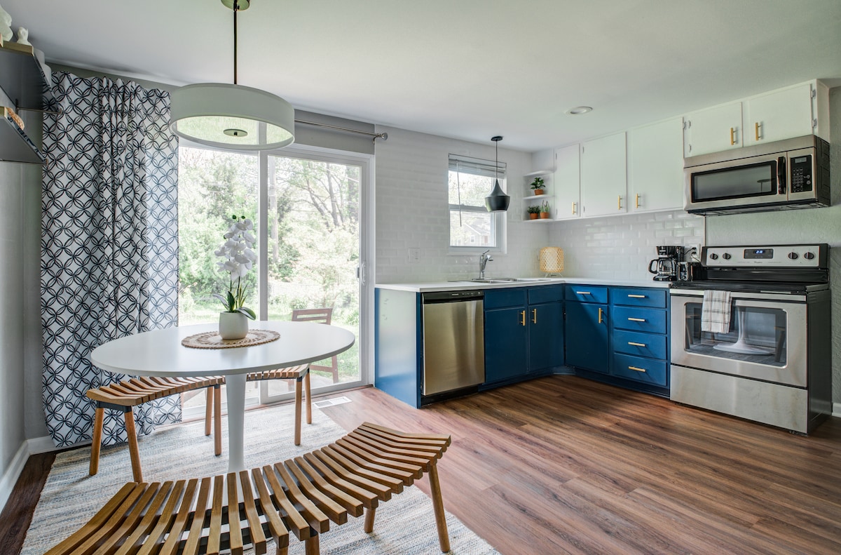 Beautifully decorated w/ a mid-century modern vibe throughout. The house will make you smile from the very beginning. The fun, flair & funk is carried throughout this updated house. Sleep is very imprt which means you will find quality mattresses & bedding here! This house is blocks from KU Med, Westport, West Plaza & 5 mins drive to T-Mobile Center, Crossroads & many popular attractions. Traeger Grill & Solo Stove recently added! - Ranch layout-no stairs to bedrooms or bathrooms!