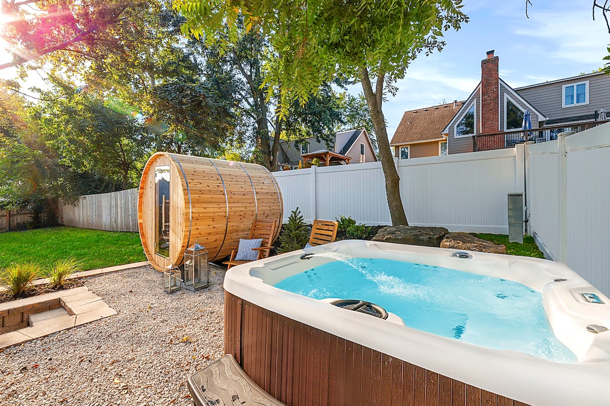 热水浴缸和火坑。加大双人床。15分钟到KC