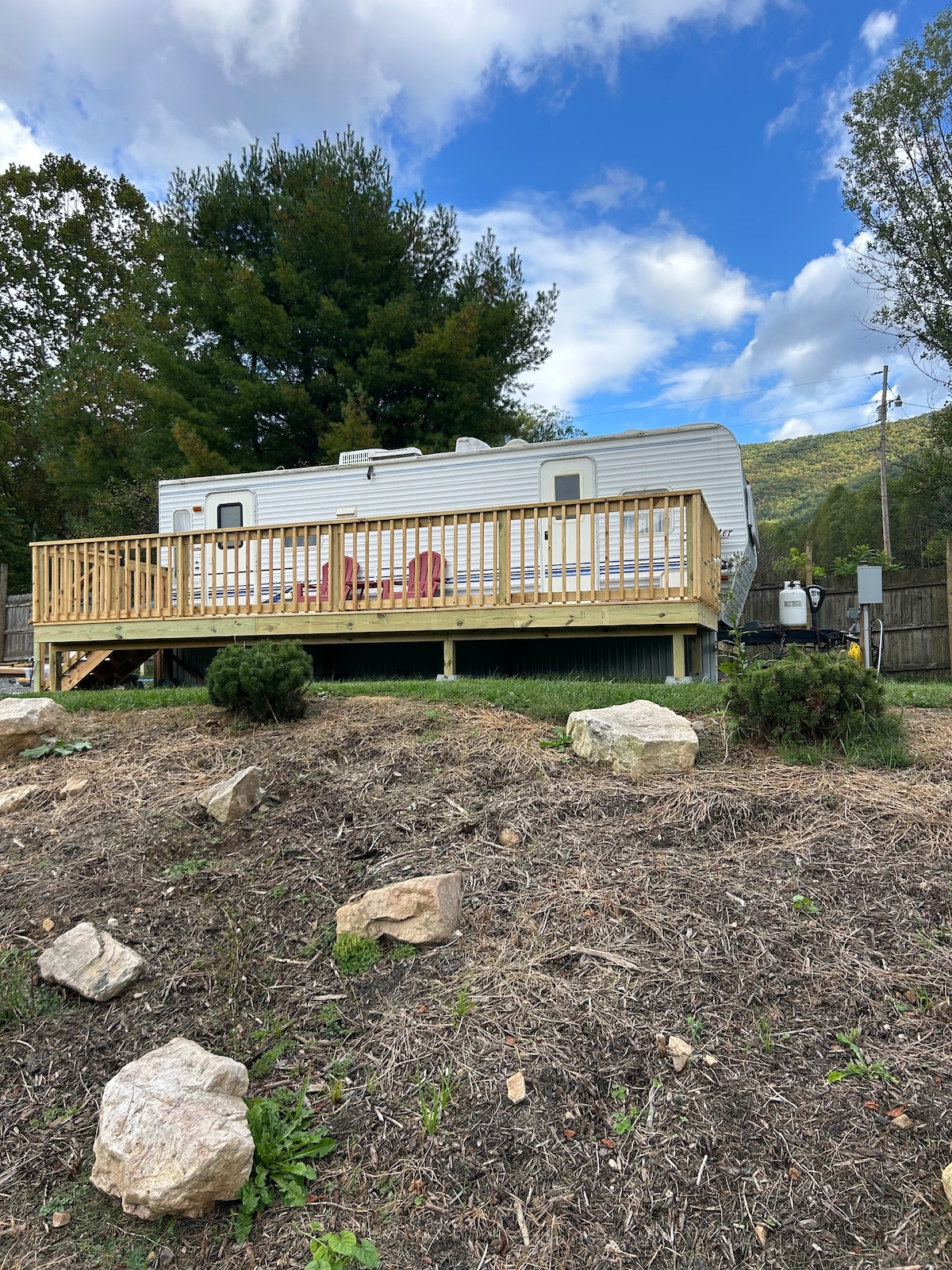 Relax at this peaceful place to stay. One bedroom plus comfy queen sofa sleeper and twin cot. Lots to do with the Appalachian Trail, waterfalls, 3 lakes, Roan Mountain, Cherokee National Forest, and Bristol Speedway and Casino nearby! Great fishing, hiking; ideal for adventure enthusiasts! In Stoney Creek on the outskirts of Elizabethton, Tennessee, you will have a complete kitchen, laundry, fire pit, internet tv, beautiful views and ample parking for a boat, camper or trailer.