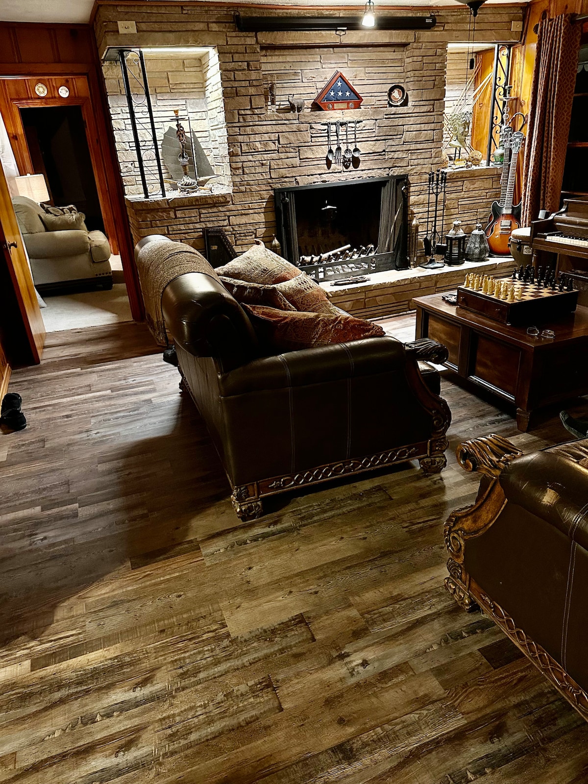 Adding another bed 11/16! The full will move in w/the twin to sleep up to 12! Beautiful, cozy, pet-friendly retreat in a quiet, sought-after neighborhood, minutes from downtown shopping & dining. Full home access with seasonal pool, gas fireplace, office workstation, kids’ room w/toys & dress-up clothes, fully equipped kitchen, coffee bar w/flavored coffees, laundry, fire pit, cafe lighting, and charcoal grill. Ideal for families or groups seeking comfort, convenience, and a relaxing getaway.