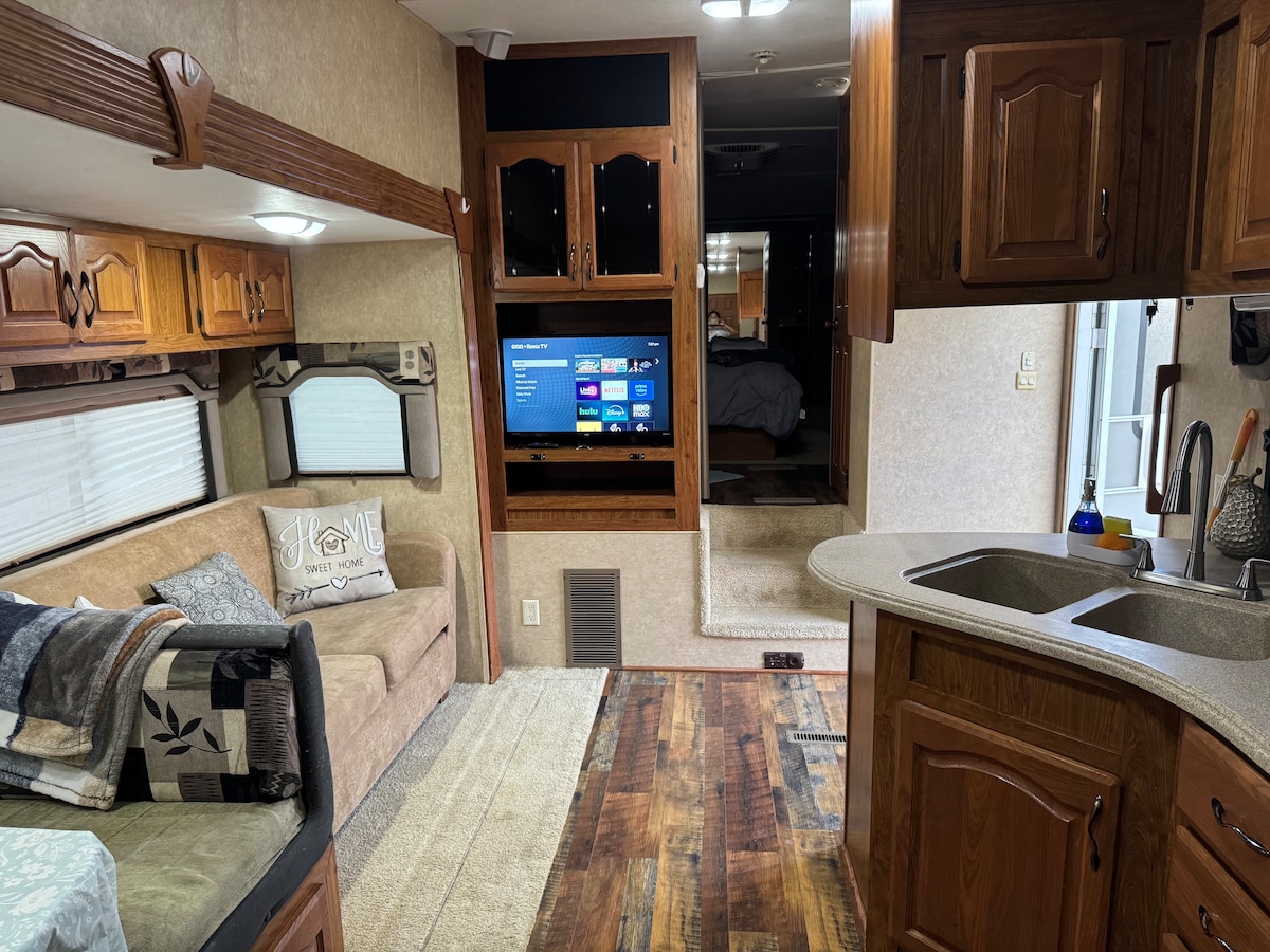 The whole group will be comfortable in this spacious and unique space. It has everything to make your stay pleasant, your very own under roof parking. Private back porch with horses in view. Each board on the walls, every tile on the floor, all the unique details was lovingly done by hand. We are proud to share our place with you. We are in the country only half a mile from lost oak winery and 2 miles from all the action of Wilshire st. Halbert farms on one side and a sheep farm on the other