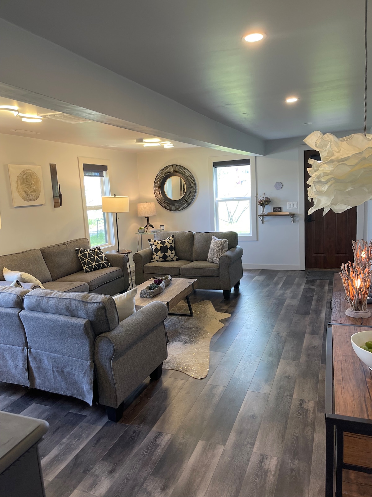 A gem in the middle of downtown! The Court Haus on Main Street is over 100 years old. The space captures the history of the building while providing a luxury, modern feel. Large picture windows overlooking Main Street allow for beautiful views of downtown Buffalo. Although located in a small town, this loft apartment has metropolitan vibes. A queen bed, a full over full bunk bed, and a queen air mattress make this perfect for families or groups. We hope you enjoy the Court Haus as much as we do!