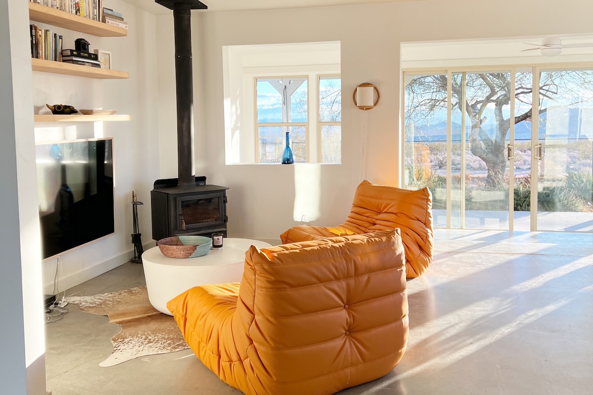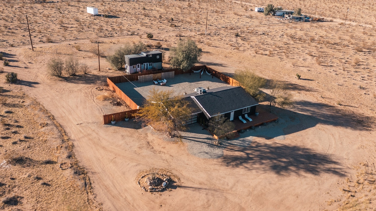 Welcome to Chappies Desert Escape, your ideal friends & family getaway! "The perfect blend of 'close enough' and 'just far enough away." ☆ 5 Acres of Private Desert ☆ Spacious Hot Tub w/ Lounge & Yoga Deck ☆ Cowboy Pool ☆ Mega Chess, Cornhole, Horseshoes ☆ Game Room, Claw Machine, Foosball Table ☆ Incredible Stargazing & Mountain Views ☆ Three 2-Person Cube Hammocks ☆ Gas & Wood Fire Pits ☆ Coffee Bar ☆ Propane BBQ ☆ Fully Equipped Kitchen ☆ Pet Friendly ☆ Baby/Infant Gear ☆ High-speed WiFi