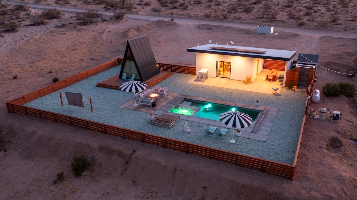 约书亚树沙漠绿洲:泳池、热水浴缸、火坑!