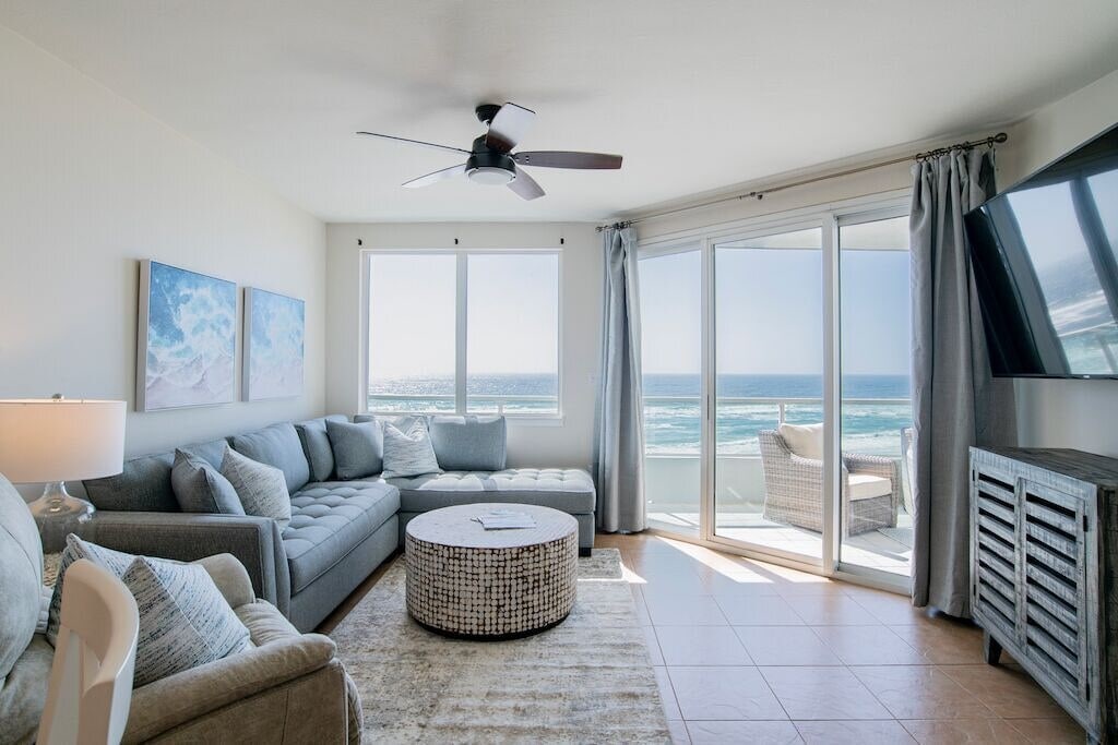 Amazing views! Beach front "Peace in Perdido Key” is a modern, minimalist getaway designed to put you at ease. 2 bd/2.5 ba unit just steps to the white sand & waves. It’s in a private 6-unit building, next to a 2 mile natural state park full of sand dunes, sea oats & wildlife- beach stroll heaven! Soak up the expansive ocean views & sunsets from our top unit’s 2 balconies or from the open floorplan’s many windows bathing you in natural light. Family friendly getaway w/best beach front experience