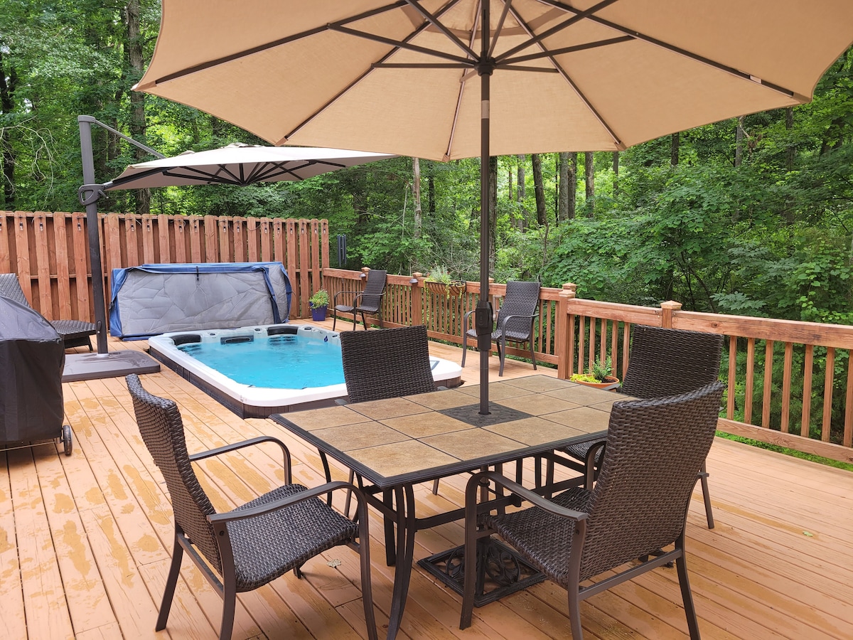 宽敞的度假屋:热水浴缸和树木茂密的后院