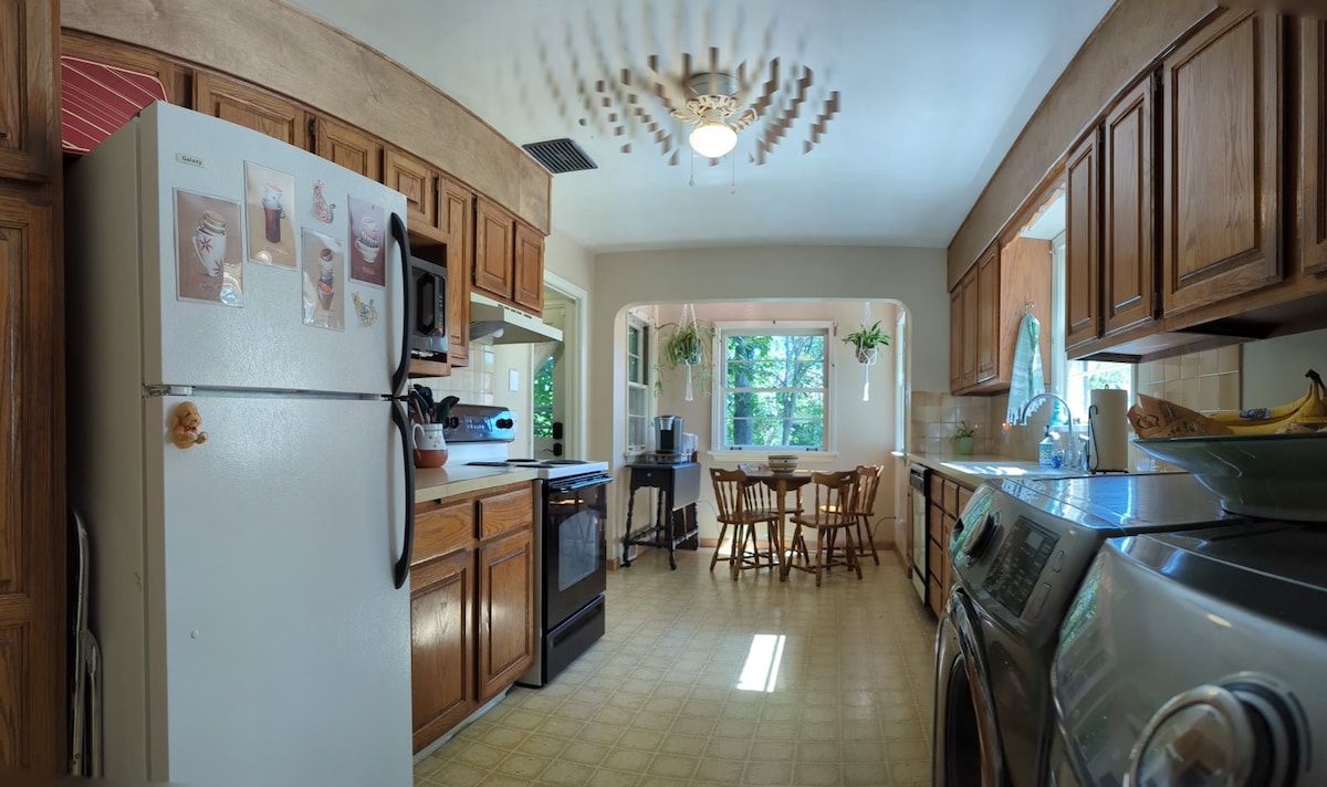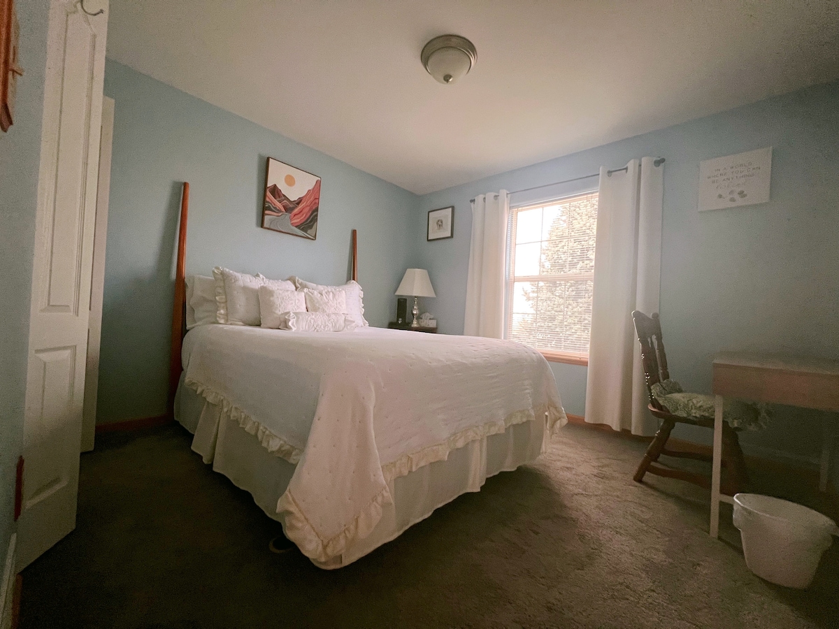 Our beautiful home offers one bedroom with an en-suite bathroom that has a tub/shower combo. The room also has a fully stocked kitchenette with microwave, mini fridge, toaster oven, hot plate, Keurig, utensils, pots and pans, plates, cups, bowls, coffee, cream and sugar. There's a very comfortable queen bed, two gentlemen dressers, a desk and chair, and 55 inch smart TV. You will have a separate entrance and enter through the front door. It's a completely private space with no shared spaces.