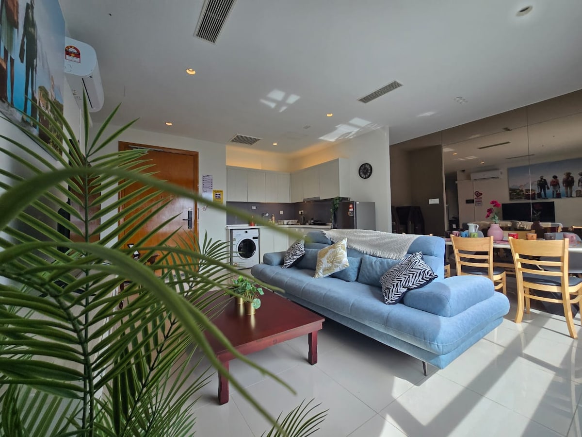 Welcome to our warm and creamy-themed 2 Bed 🤍Perfect for up to 4 pax, making it ideal for couples, friends, families, and business travellers. Step into a bright living room filled with natural light, soft beige textures and a comfy sofa to unwind after a long day. A large wavy mirror adds charm 🥰 Located in the heart of Johor Bahru which 5 min distance from CIQ checkpoint and only 5 minutes to KSL Mall🚗 making it a convenient choice for shopping, dining, and entertainment🌻Come to enjoy ^^