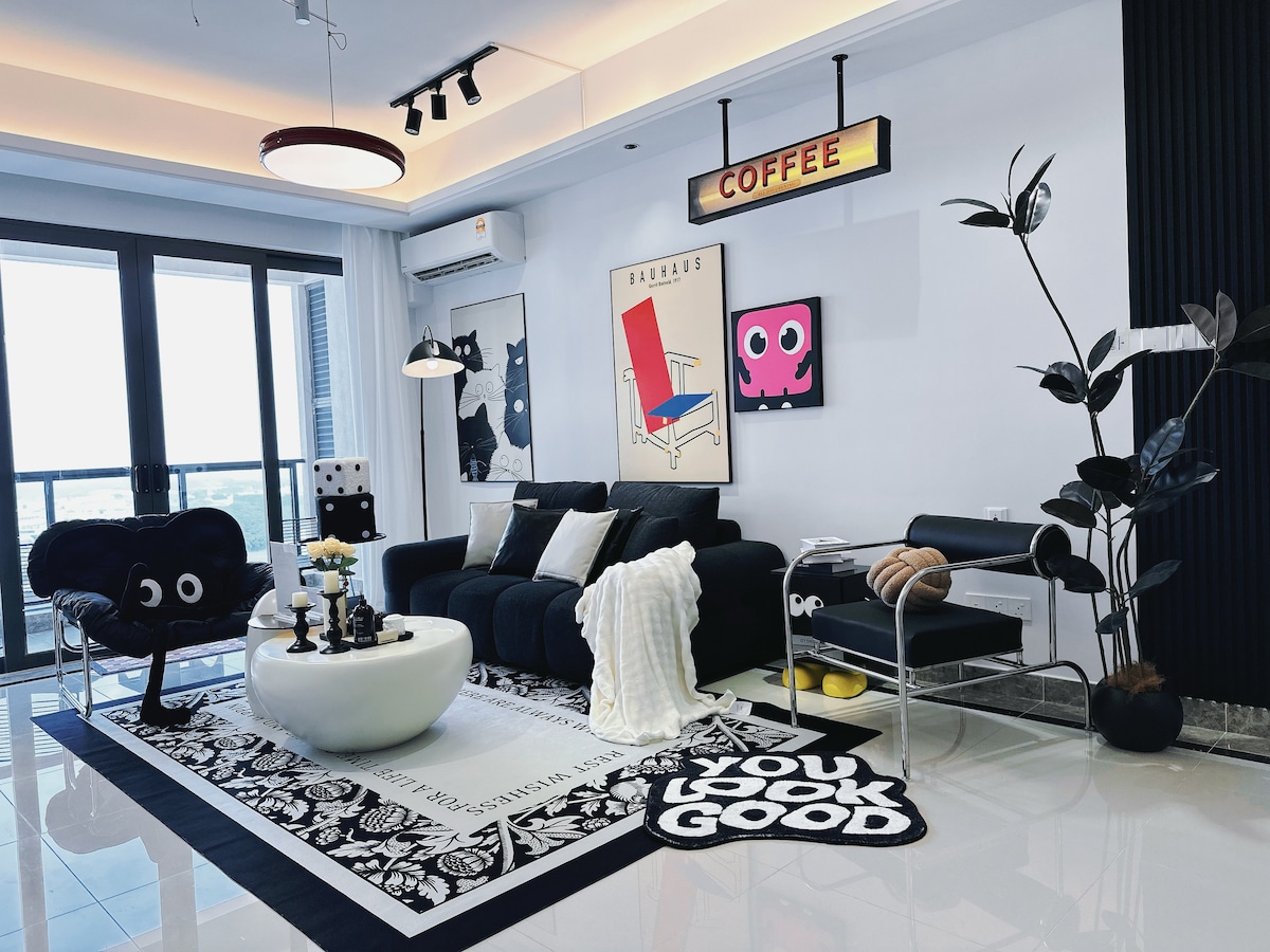 Step into our Dopamine Black & White escape in RNF—where bold design meets comfort. Just 5-min walk to CIQ, this 4-bedroom, 3-bath space hosts up to 8 guests with hotel-grade beds, linens, towels, toothbrush, shampoo & body wash. Unwind with Netflix, YouTube, karaoke nights, or dive into retro fun with a game box (Can play PS Game, Gameboy , Arcade classics & more. Cook simple meals with the induction cooker, fridge & microwave. Seaview, free 1 parking,and a stylish vibe await your Short Escape.