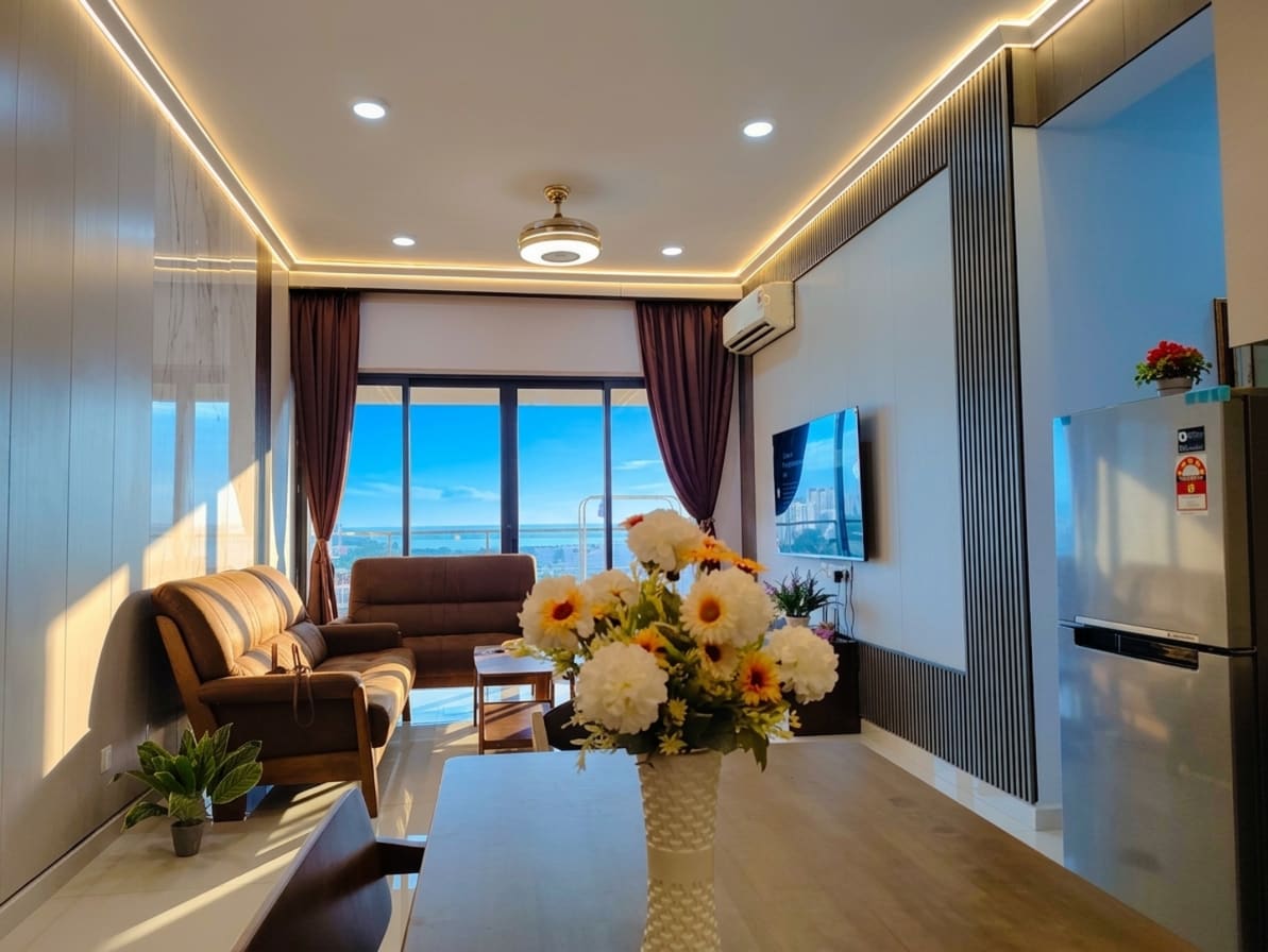 "Luxury Seaside Retreat – Perfect for Families & Friends" Welcome to our stylish condo in Danga Bay, Johor Bahru, designed for relaxation and fun: 3 bedrooms and 3 bath = 8-10 guests Kids-themed room: Double-decker bed with slides. Karaoke set: Perfect for entertaining nights. Insta-worthy balcony: Plant wall with neon signage for stunning photos. Board Games such as Monopoly and Cluedo for family fun! Enjoy breathtaking sea views and nearby attractions. Book now for an unforgettable stay!
