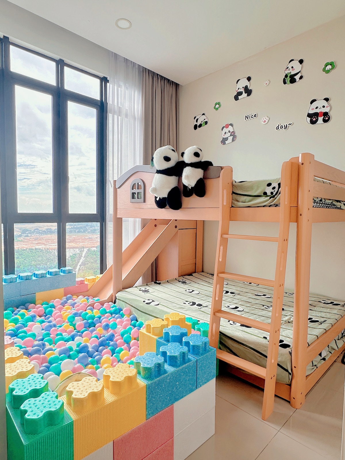 You will have a great time in this comfortable residence New renovation Sep 2025 2 bedroom unit 23rd floor Unlock City View 2 toilets kitchen Listing introduction 2 bedrooms 2 bathrooms Air conditioning in 2 bedrooms and living room Bedroom 1 1 queen bed and 1single bed with fresh linen Bedroom 2-tatami platform 1 queen bed, 2 single beds Comes with clean linen living room with Slide Lego and Toys -