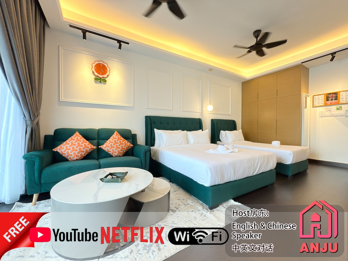 8 minutes away from Legoland🚗🧸 Walking distance 👣 to Sunway Big Box🛍️, GSC Cinema🎬, KFC, Starbucks, Family Mart, X Park, etc. Suitable for 4-6 people👪 In The Room 1 Queen Bed 2 Single Bed 1 Queen Sofa Bed Playground with Slide Living Room with Projector Dining Area Shower Room Kitchen In The Apartment Vending Machines Children’s Playground Swimming Pool Gymnasium Yoga Area Basket Ball Court Game Room BBQ Area