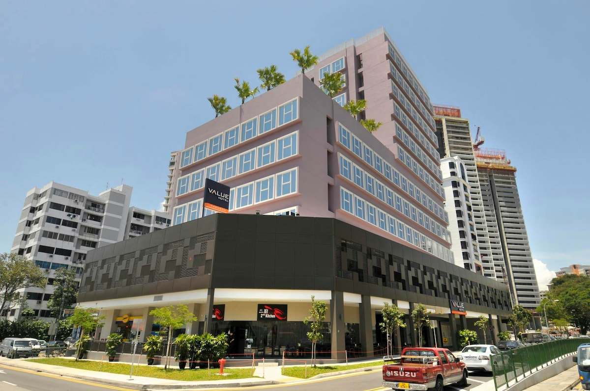Escape the city's hustle at Hotel 81 Changi, where comfort meets convenience. H81's Changi Superior Twin Room brings serenity into city living. This affordable hotel in Changi offers guests a relaxed experience with spacious rooms adorned in soothing black and white with a great view of the city. Getting to your exploration sites or shopping centres from our hotel is a breeze with the MRT located a few metres away. Stay with us for comfort, convenience, and value for money! Room size: 14 sqm