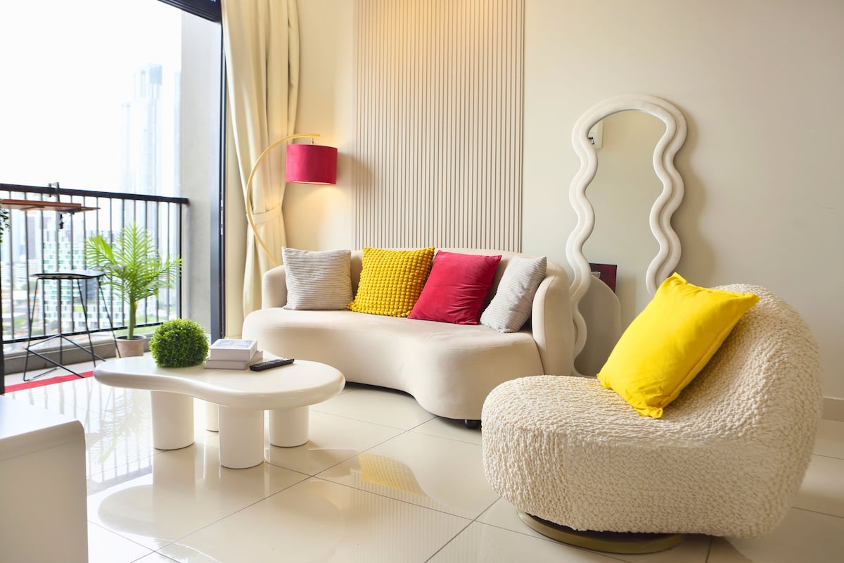 Welcome our 6pax cozy creamy style 2Bed 2Bath🤍 Our location is at the heart of Johor Bahru town with only 10min walk distance from covered link bridge CIQ, JB sentral , City Square and Komtar 🚶🏻It is very suitable for family gathering, friends group, business travelers or tourists🌹 Our unit facing an amazing city view 🌃 from the balcony. R&F Mall is at your opposite walkable with Jaya Grocer, laundromat, 7-11, restaurants and convenience stores are all on the ground floor.🌻Come to enjoy