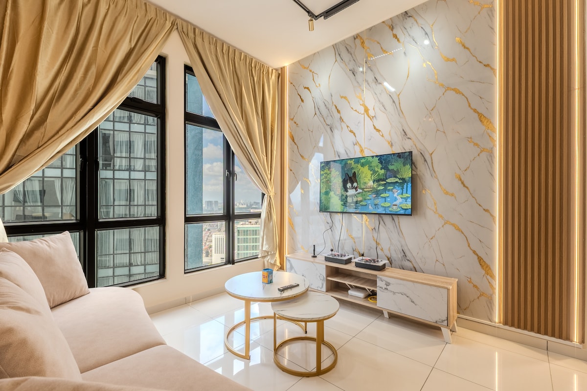 Luxurious spacious 3-Bedrooms unit with Bathtub! Premium quality King & Queen size Beds that guarantee good sleep here with amazing Midvalley Southkey Mall view! Main Highlight! -Private Bathtub -65" Smart TV with YouTube and Netflix apps -Pool Table -Retro Game Console -Drinking water Dispenser Surround with shopping mall & wide range of local tasty food - 2 mins drive to Midvalley Southkey JB - 5 mins to KSL City Mall - 8 mins to City Square Mall & Custom JB