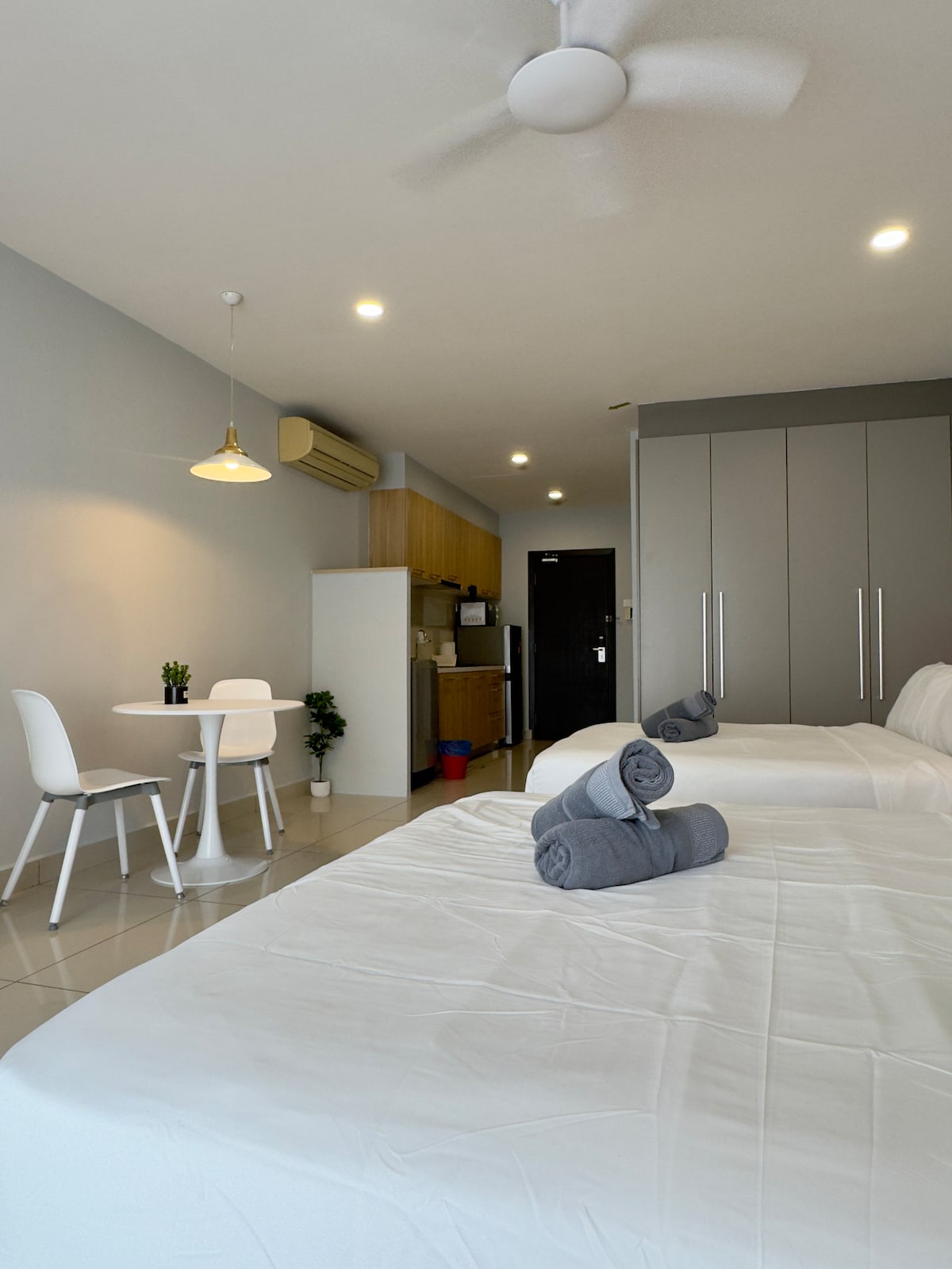 【华人房东,可用中文交流】 Indulge in a luxurious and romantic escape at our uniquely designed high-floor studio, offering breathtaking lake views and a private bathtub on the balcony. Perfect for couples seeking a tranquil getaway, this stylish space blends comfort with elegance, creating an unforgettable experience. Located just 8 minutes from Mid Valley Southkey Megamall, our homestay provides easy access to shopping, dining, and entertainment while ensuring a peaceful retreat away from the city's hustle.