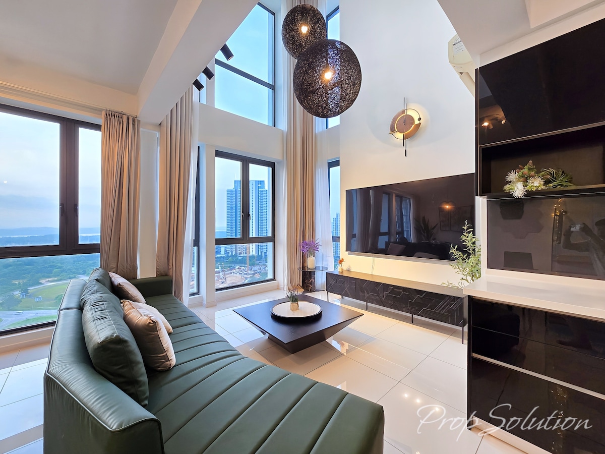 Our Minimalist home is your ideal tranquil heaven. Escape from the daily hustle and bustle, immerse yourself in the tranquil cosy comforts. The beautiful high floor Seaview and it's great location are suitable for couple and whole family who seeking for a get away trip. Only 5mins away frm Sg. 3-5 mins walk to Familymart, Starbucks, Restaurant, Movie theatre Sunway Big Box Retail Park, X Park and etc. 8 Mins drive to Legoland. Relax with the whole family at this peaceful place to stay.