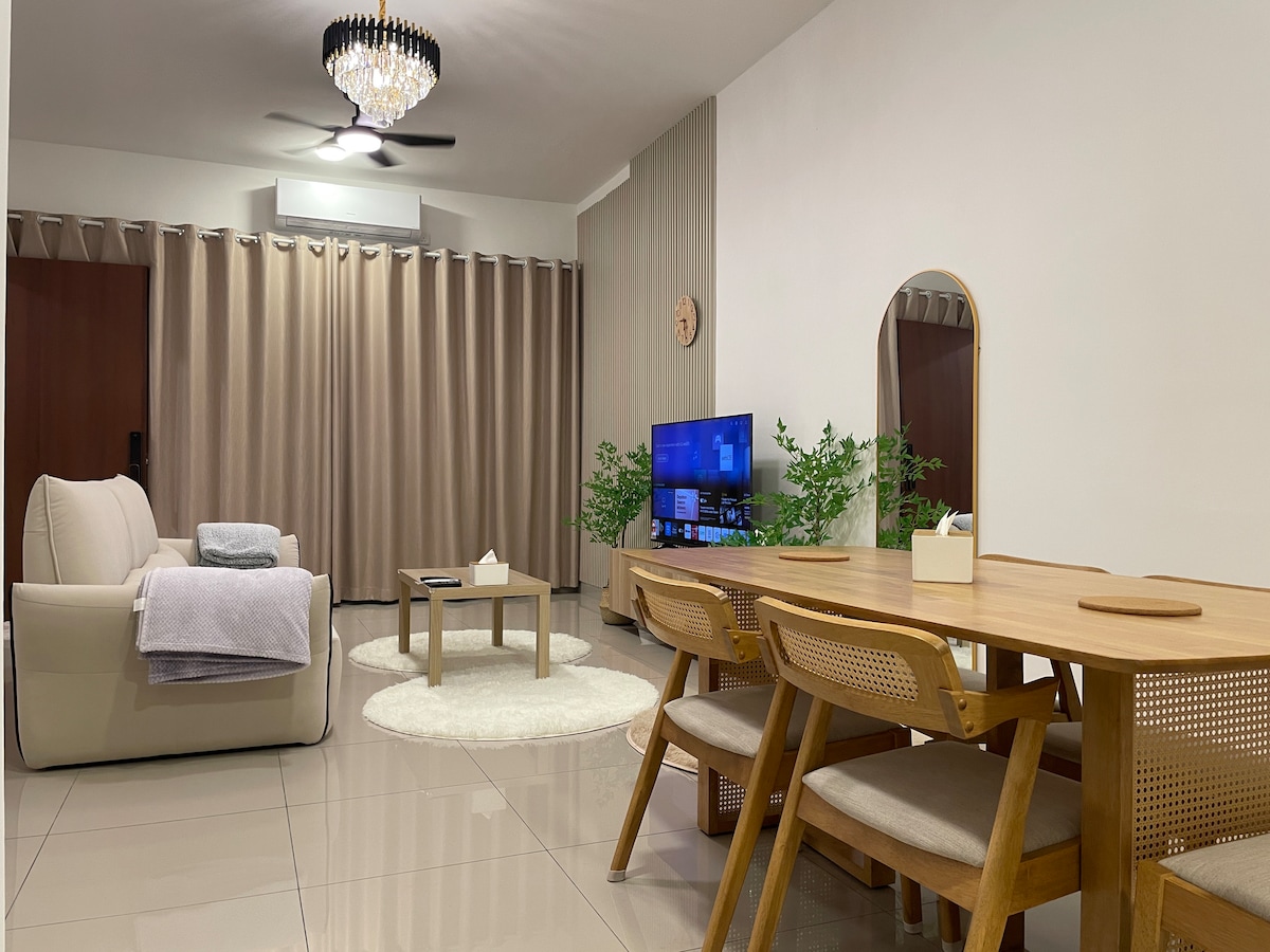 Our unit designed with white & black concept, nearby Toppen Ikea, Aeon Tebrau, Mount Austin trendy cafes and Johor Jaya Street food vendors and restaurants . We provide: *500Mbps high-speed WiFi *fully air-conditioned (5 units new aircon) *karaoke & TV box system (Jazpiper) *65inch smart TV *board games *simple kitchenware *SK Magic water purifier *towels *shampoo *body wash *coffee & tea