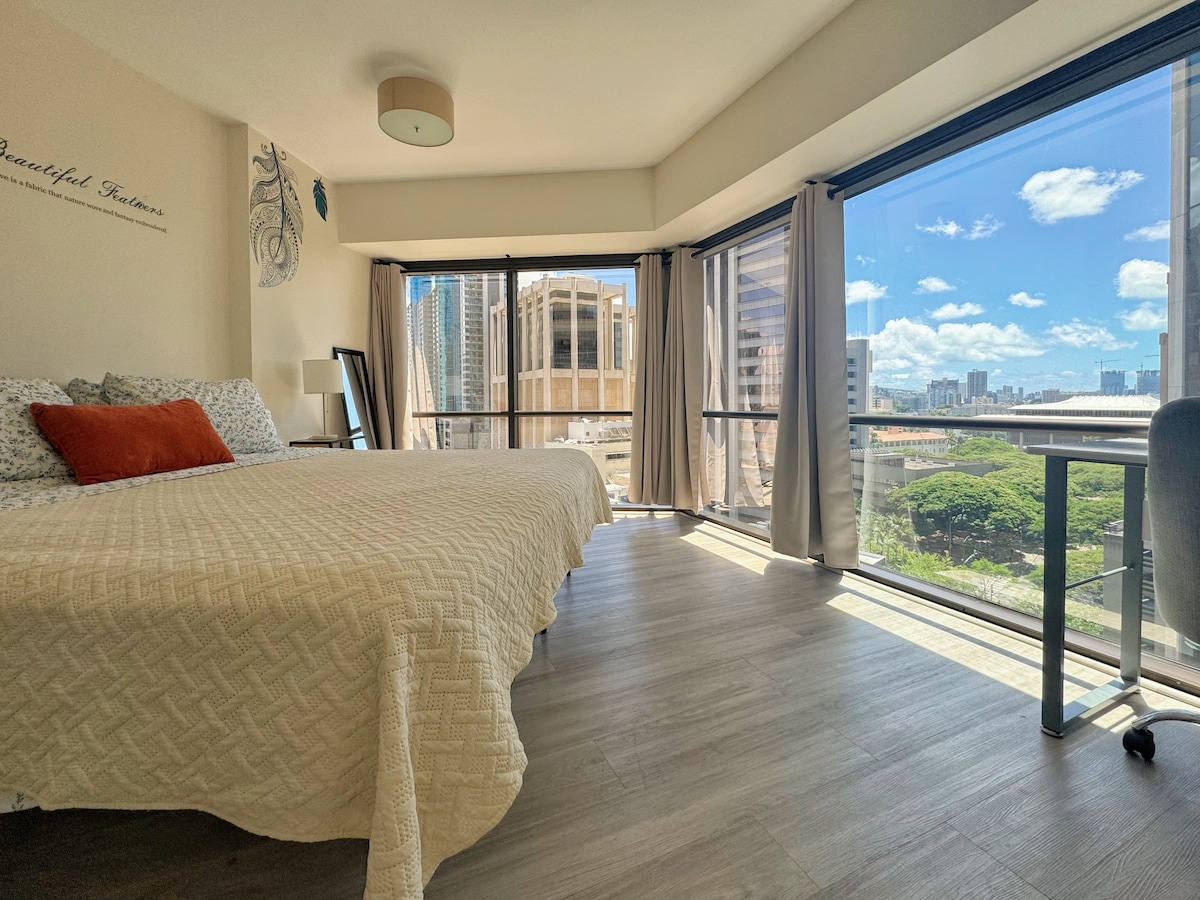 Aloha from your Ohana's home away from home in the heart of downtown Honolulu. Our bright and airy luxury condo is perfect for small families, solo travelers, and business professionals who want comfort, convenience, and a touch of island charm. Centrally located in downtown you will be just minutes away from: -Historic sites like Iolani Palace and Chinatown -The vibrant Honolulu Harbor and Aloha Tower -Ala Moana Beach Park and Waikiki Beach -Shopping, dining, and public transport